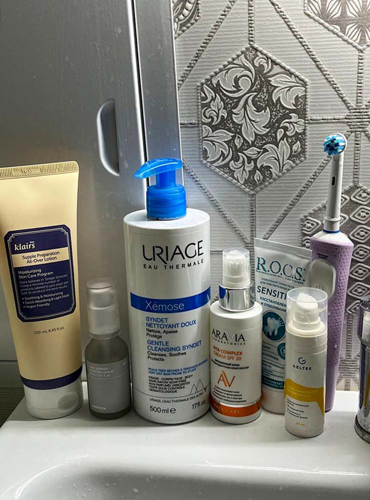 Красота: за год мой уход изменился, и я довольна им на 200%! Все мои запросы благодаря ему осуществились. Утром теперь только вода и крем, вечером — умывалка или энзимка. Чередую ретинол и восстановление кожного барьера, раз в неделю у меня пилинг пэдами, маски делаю два-три раза в неделю.