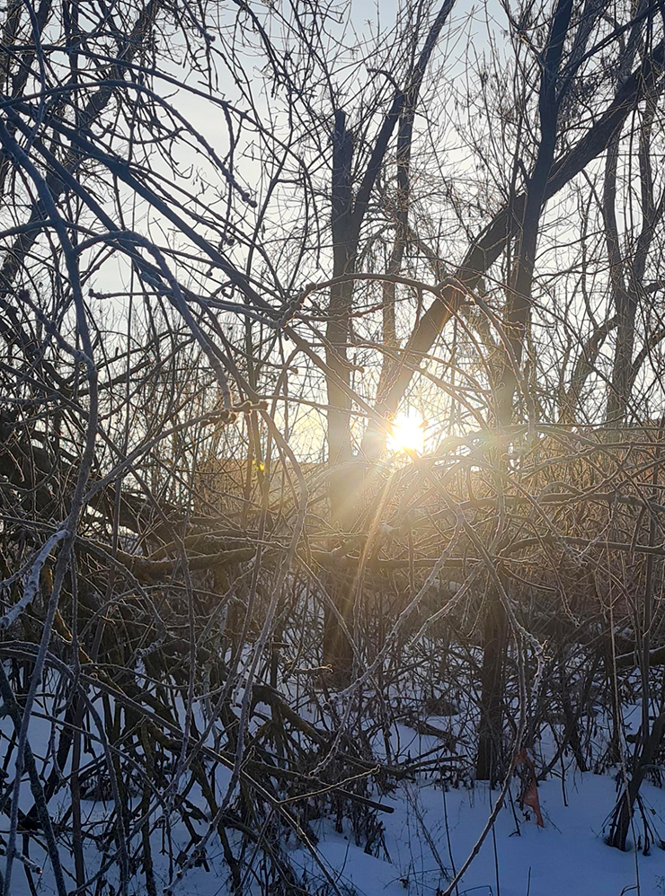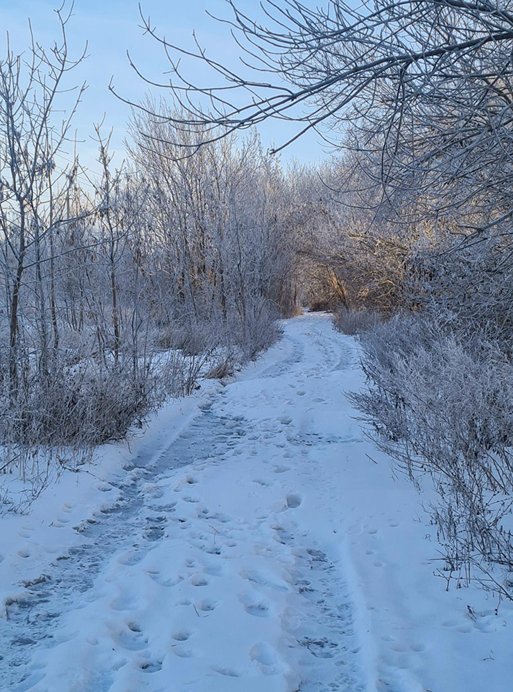 По пути на работу любуюсь солнышком и природой — все покрылось инеем. Наш склад находится за городом, поэтому тут морознее.