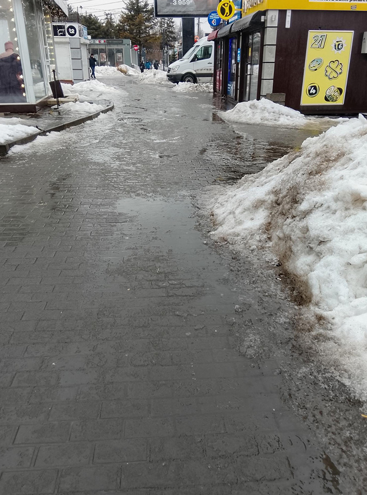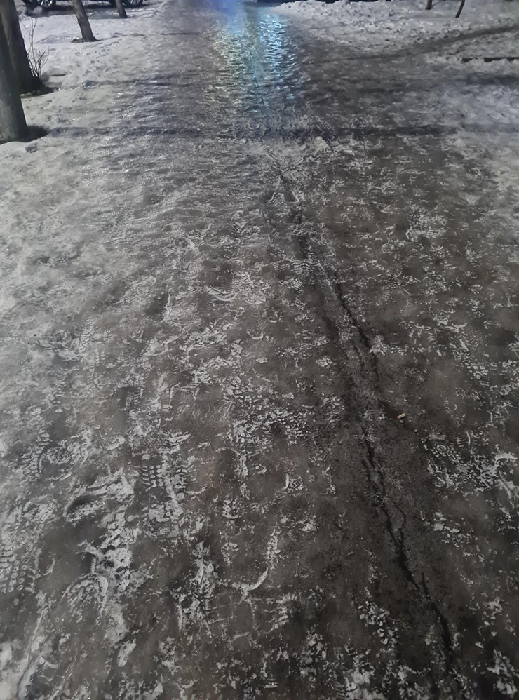 15:00. Выхожу на остановке. Тащу тяжеленный пакет со всеми покупками, еще и этот гололед добавляет экстремальности.