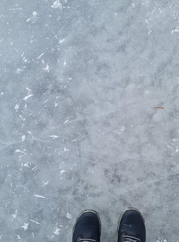 Скольжу по льду на свою остановку. Оплачиваю проезд на общественном транспорте. −44 ₽