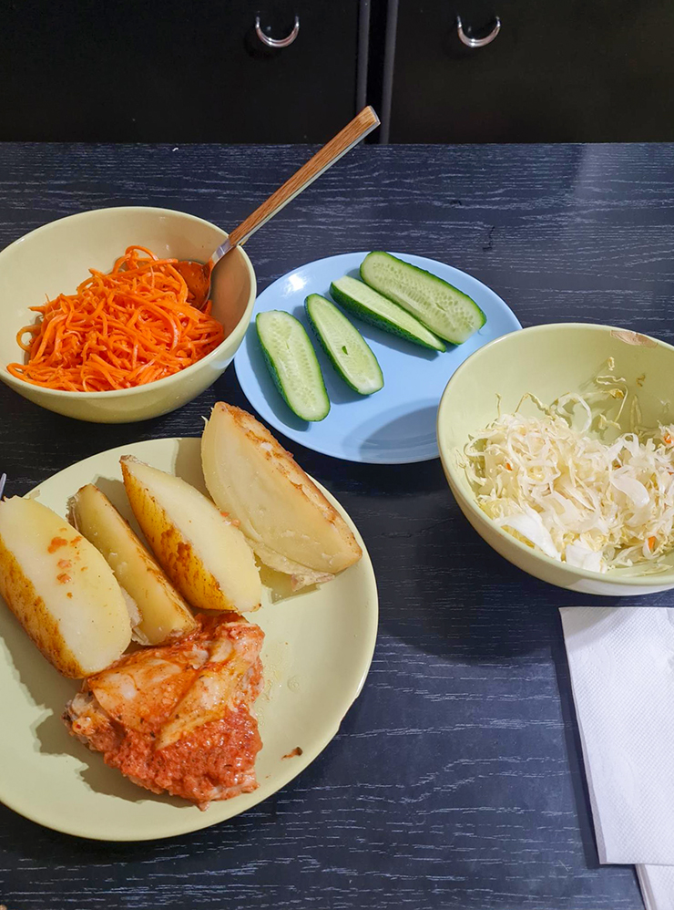 15:30. Иду на обед. Ем я поздно, знаю это. На работе привозные обеды. Часть их стоимости вычитают у нас из зарплаты — в среднем выходит около 800 ₽ в месяц. Другую часть компенсирует компания.