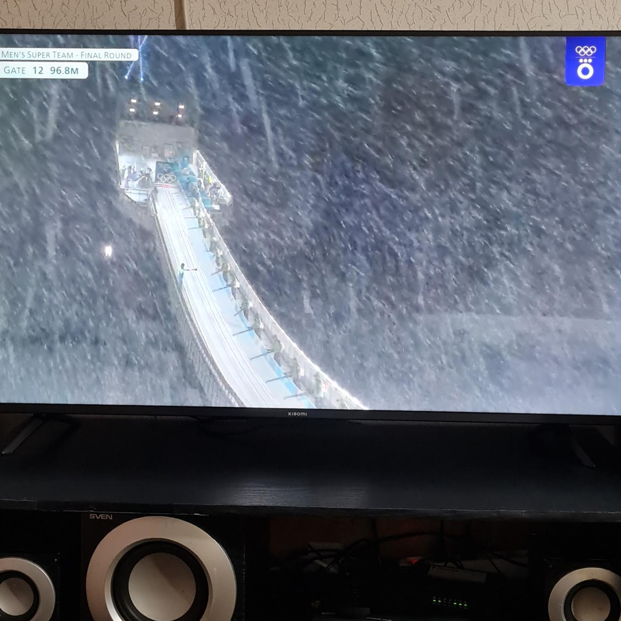 21:20. Приходит С. с работы, кормлю его. Он ужинает на кухне, чтобы смотреть ролики в телефоне, а я спокойно смотрю Олимпиаду дальше, переключаясь между парным фигурным катанием и фристайлом.