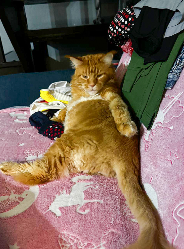 23:00. Созваниваюсь с мамой и переписываюсь с сыном. Сын шлет фотки кота. Думаю, в книге рекордов наш кот мог бы побороться за самый длинный хвост.