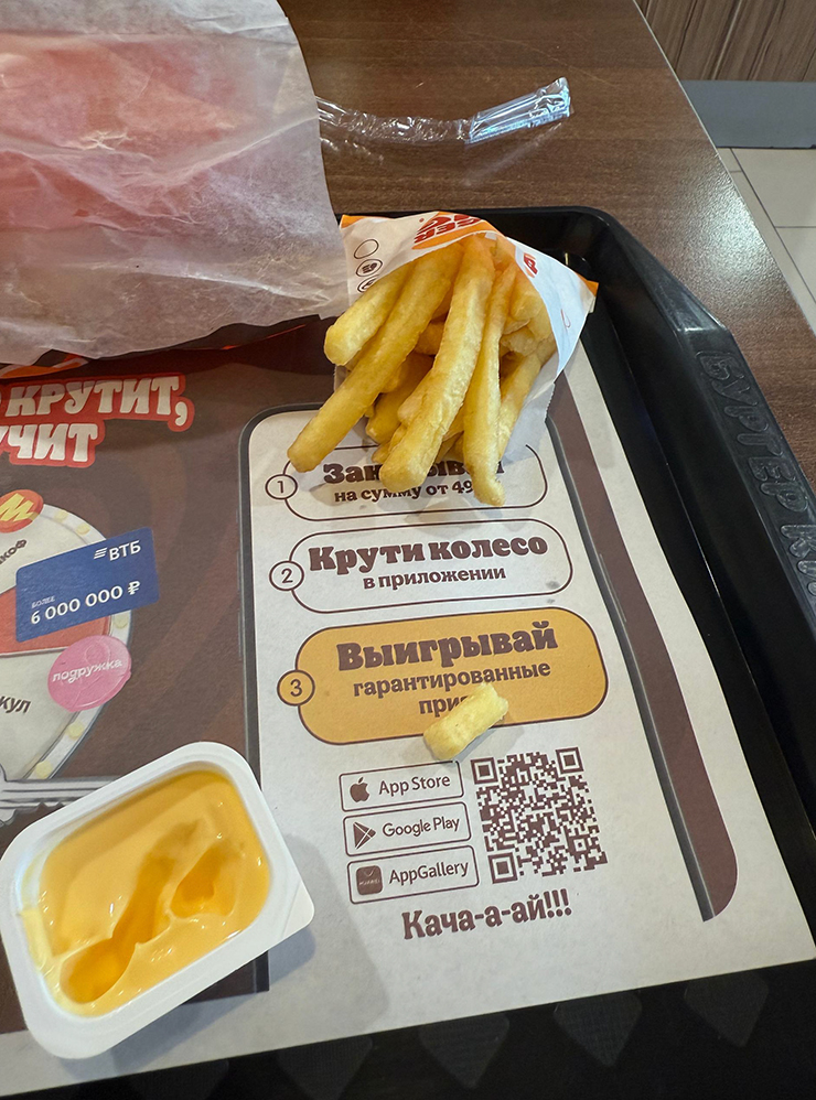 12:30. Обедаю в «Бургер Кинге» неподалеку от офиса нотариуса. −479 ₽