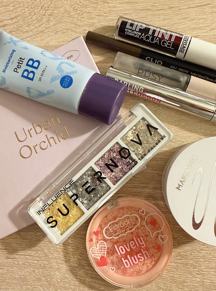 Раз в пару месяцев, по необходимости, покупаю уходовую и декоративную косметику. Краситься не люблю, поэтому последней у меня самый базовый минимум: BB-крем, фиксатор и карандаш для бровей, тинт, масло для губ, помада, румяна, прозрачная пудра, очень редко использую тени. И термостойкая тушь — это открытие года: не стекает, даже когда плачешь, не смывается мицелляркой — какая-то магия. Декоративную косметику выбираю по рекомендациям подруг, они в этом разбираются лучше меня.