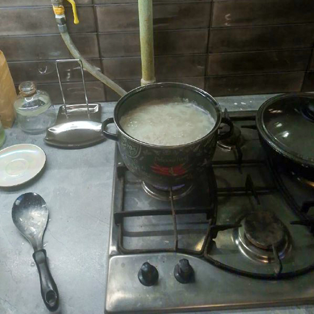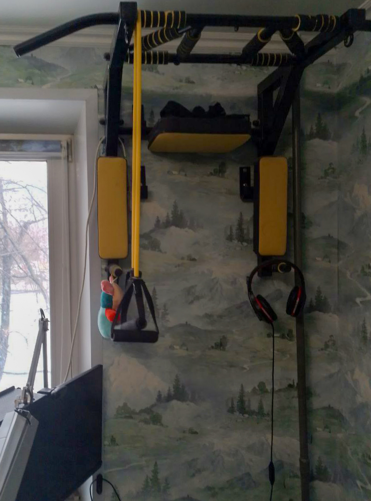 Я немного подтягиваюсь на турнике, М. готовит нам на обед хинкали.