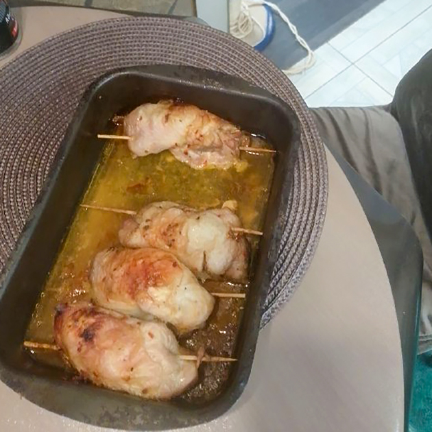 14:15. Обед — снова мясные рулетики с рисом.