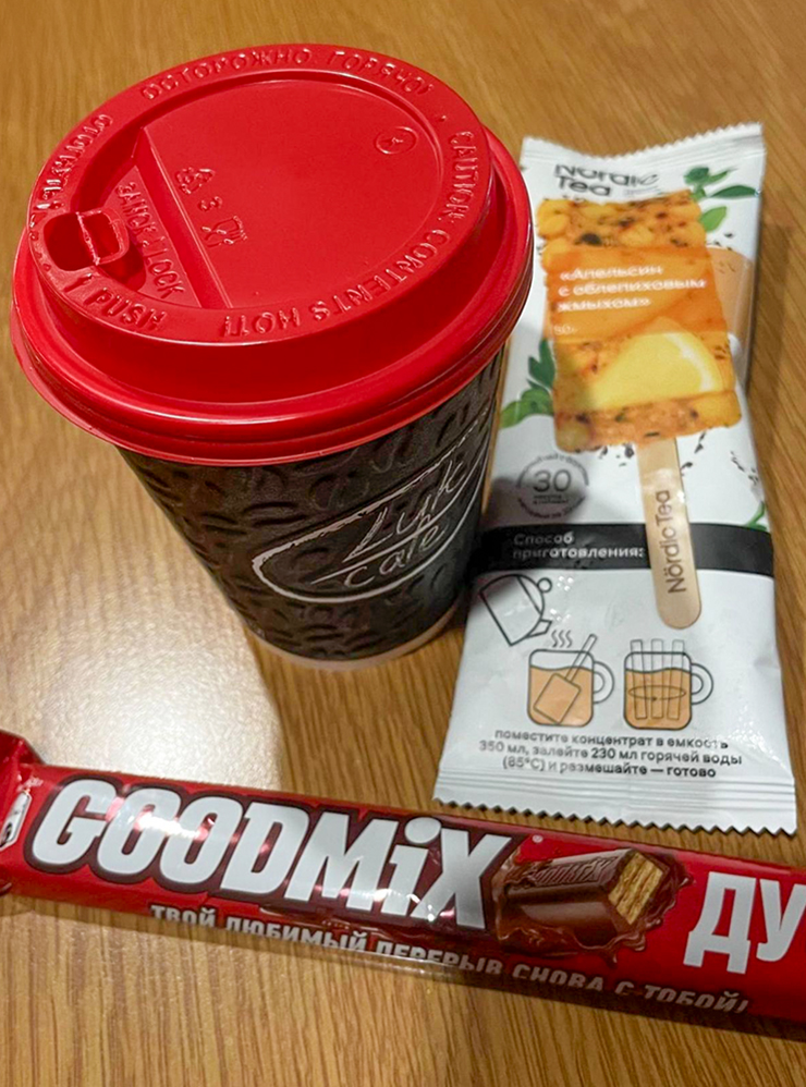 Там же купили бургер, шоколадку и чай. −756 ₽