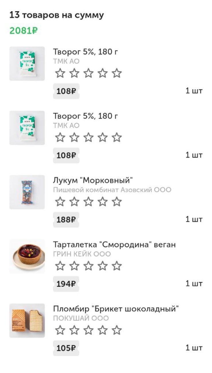 21:20. Поход по магазинам. Во «ВкусВилле» покупаем с женой вкусняшки на выходные, я по традиции балую себя пирожным шу, ем его утром в субботу с чаем. −2 081 ₽