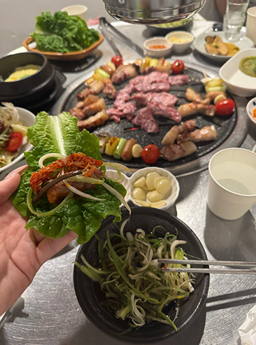Много и вкусно ела и пила алкоголь. Особенно мне понравилось традиционное корейское барбекю из тонко нарезанной говядины. Это одно из самых вкусных блюд, которые я когда-либо ела, мы потом еще раз возвращались в тот ресторан. Ну и типичное для корейцев комбо — чимек: от «чикен», жареная острая курочка, и «мекчу» — пиво.