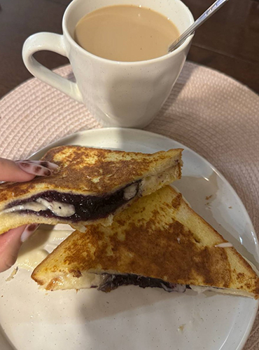 15:00. Обед. За едой сижу в телефоне и вижу рецепт сэндвича с сыром и черничным вареньем у блогера, на которого подписана. Я уже видела рецепт, и он мне понравился, а теперь точно приготовлю его вечером.