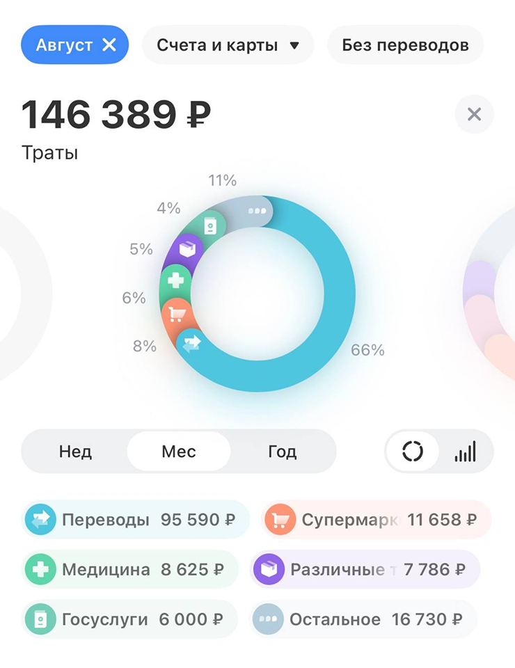 - Траты за неделю — 21 079 ₽