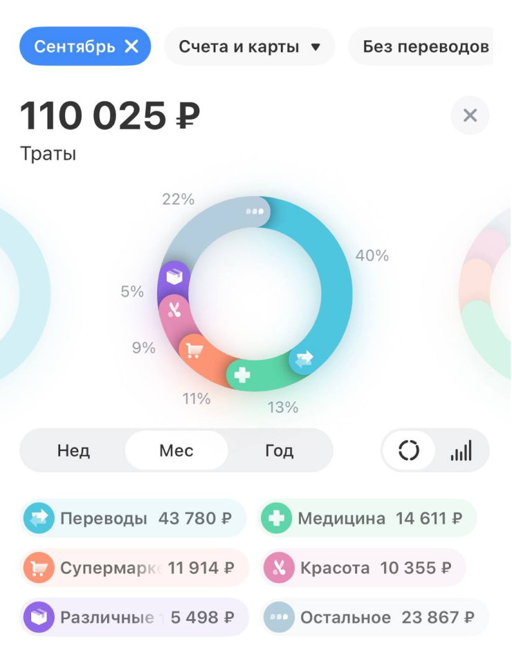 Красота: стабильно делаю маникюр, в среднем он стоит не более 5 000 ₽. Остальное сильно различается: в какой-то месяц выходит 15 000 ₽, в какой-то могу ничего не потратить. В этом, например, заказала доставку из магазина корейской уходовой косметики на 9 000 ₽, а в сентябре ничего не покупала.