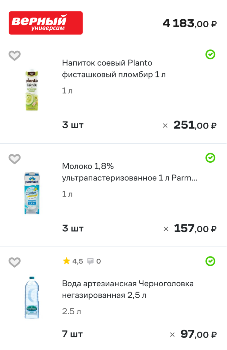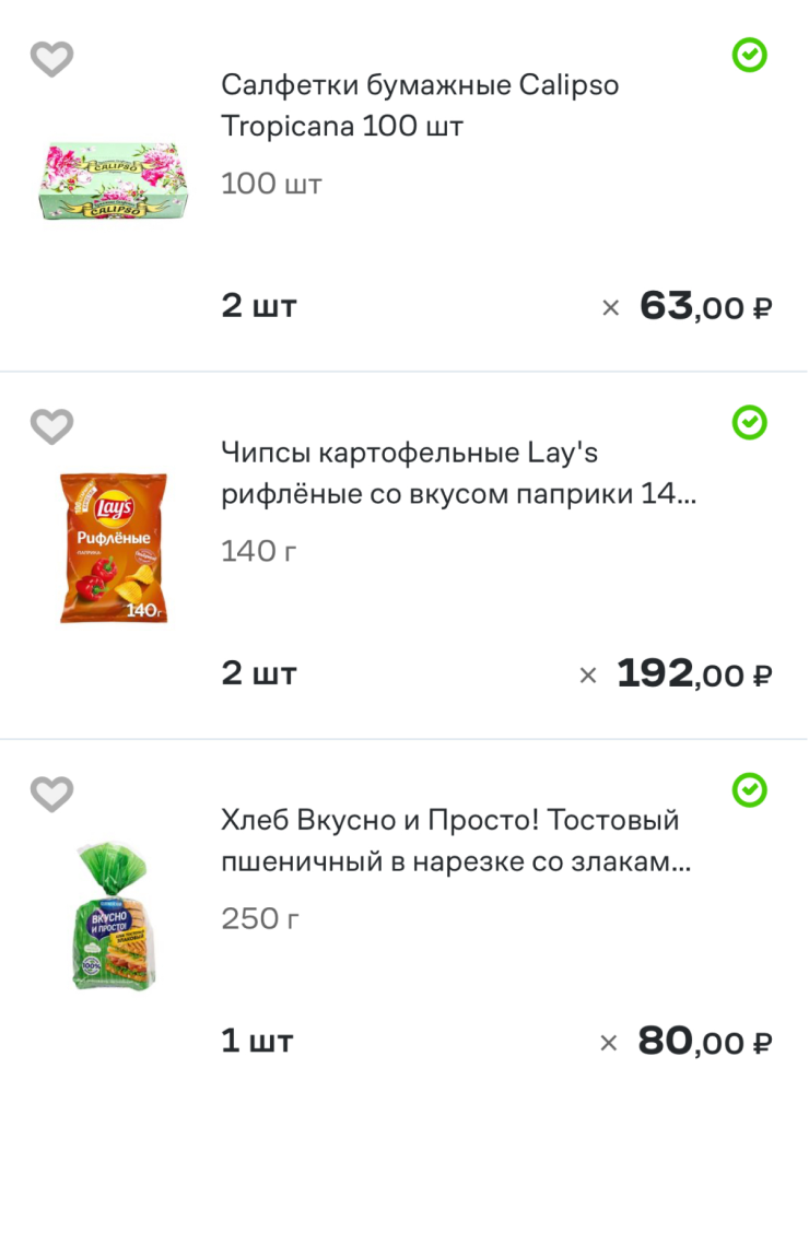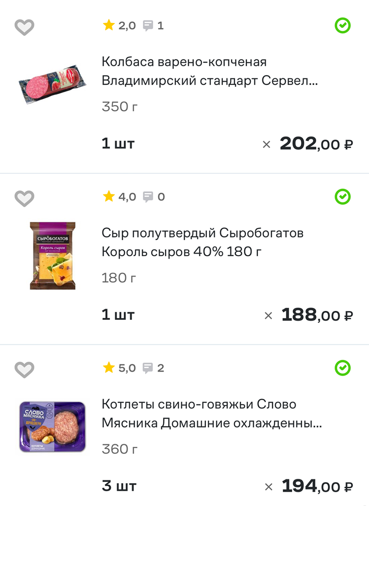 Продукты заказываю в «Магните», «Пятерочке» через «Купер» примерно на 5 000—6 000 ₽ за раз — итого 24 000 ₽ в месяц с учетом трат на хозяйственные нужды. Все остальное — это «Чижик», «ВкусВилл», Ozon Fresh. «Самокат» все, почти перестала им пользоваться. Он переехал, там дорого, и минимальная сумма заказа стала 800 ₽.