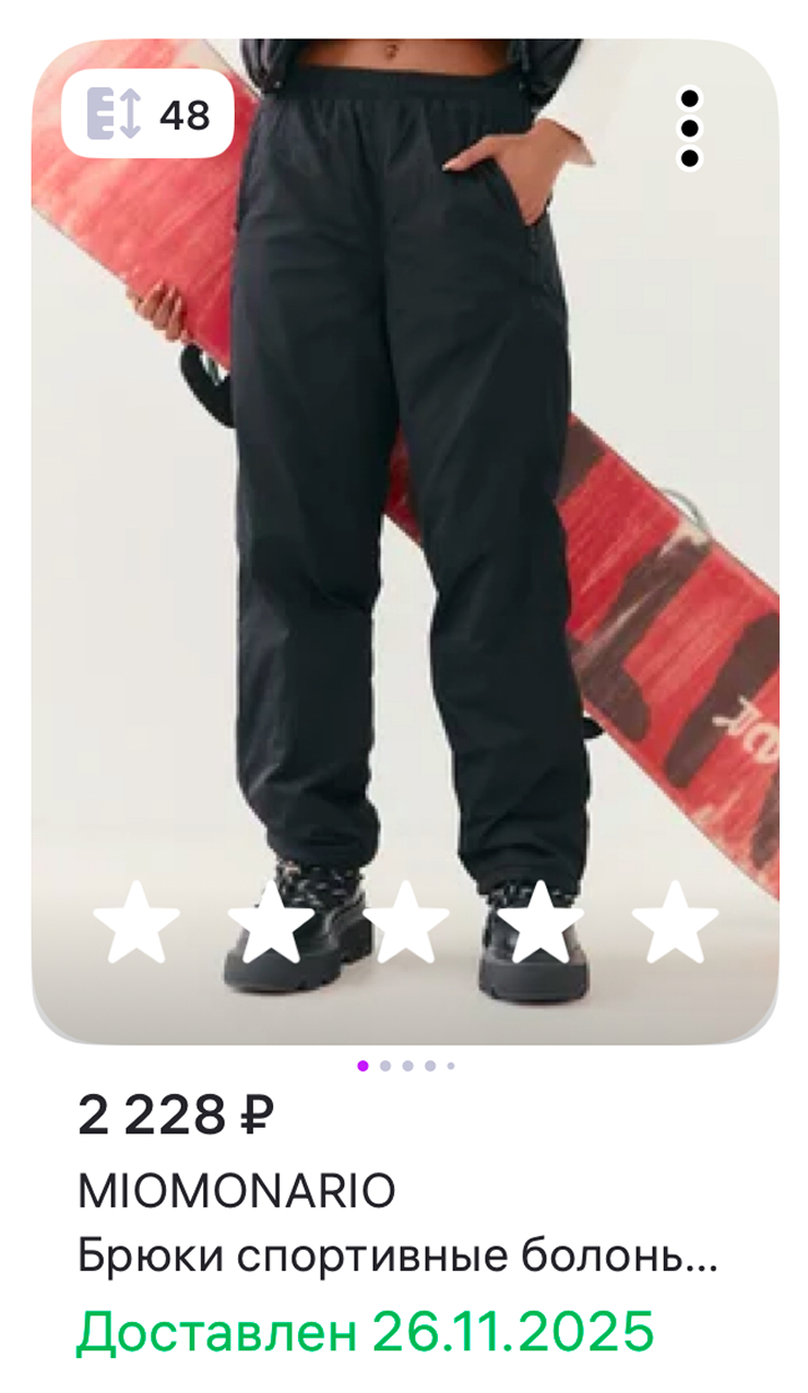 Очень хочу есть: ни завтрак, ни обед меня не насытили. Сегодня какой-то зверский аппетит, непонятно из-за чего. Захожу в пункт Wildberries, выкупаю штаны на зиму. −2 228 ₽