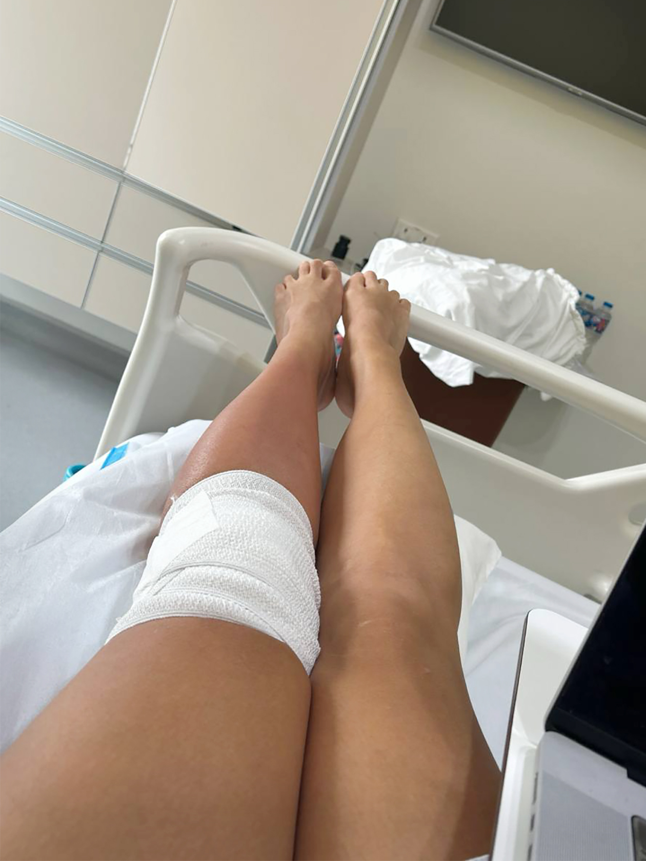 Мне сразу сделали УЗИ левого колена, чтобы исключить гнойное воспаление внутри сустава, и взяли кровь на анализ, а потом отвезли в чистую двухместную палату — она стоила порядка 30 000 ₽ в сутки. Одноместная всего на 1 500 ₽ дороже, но врач предупредил, что страховая вряд ли ее согласует. Впрочем, мне повезло: в палате я все время была одна.