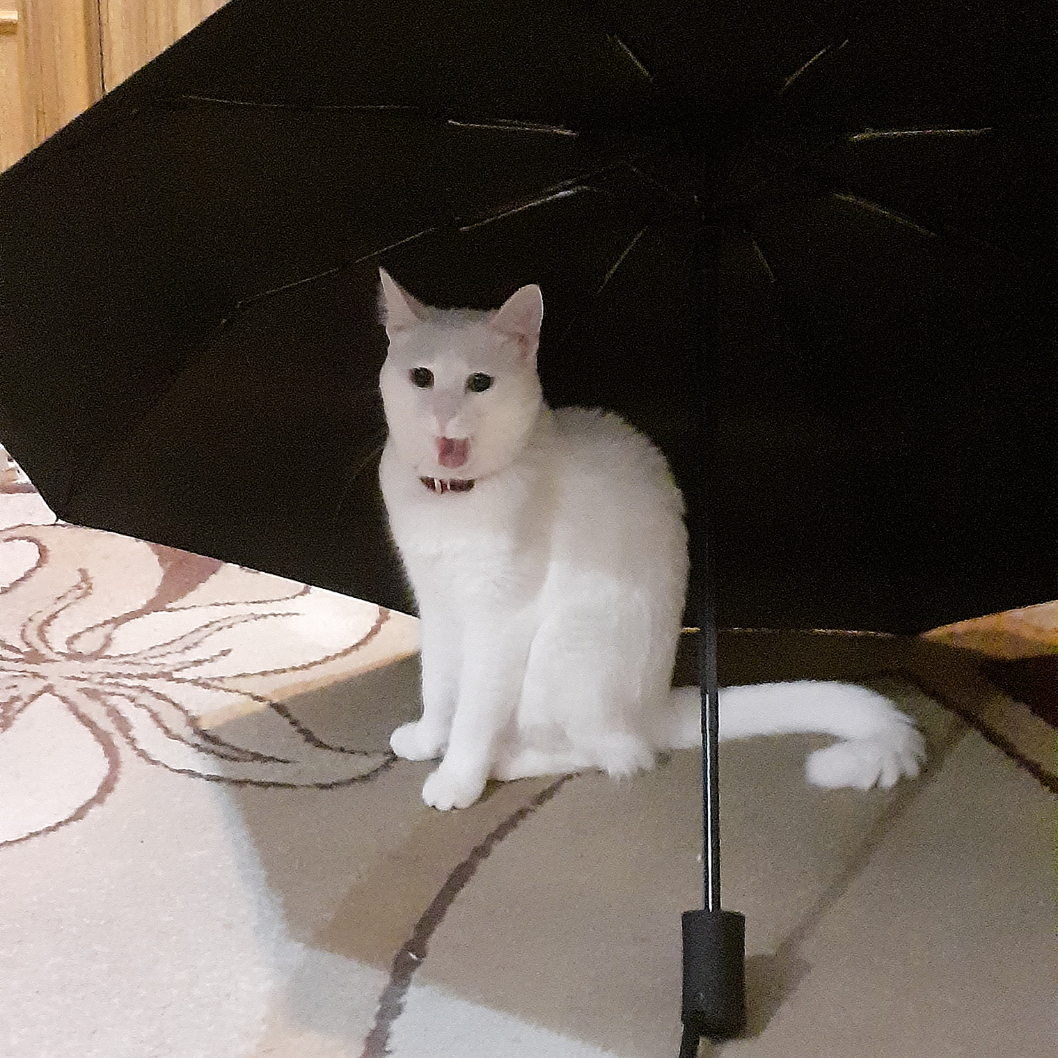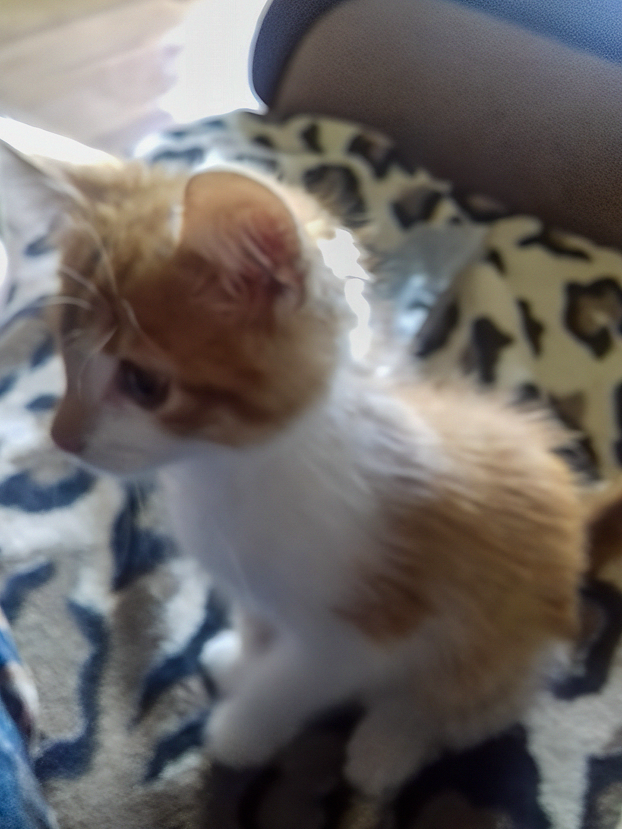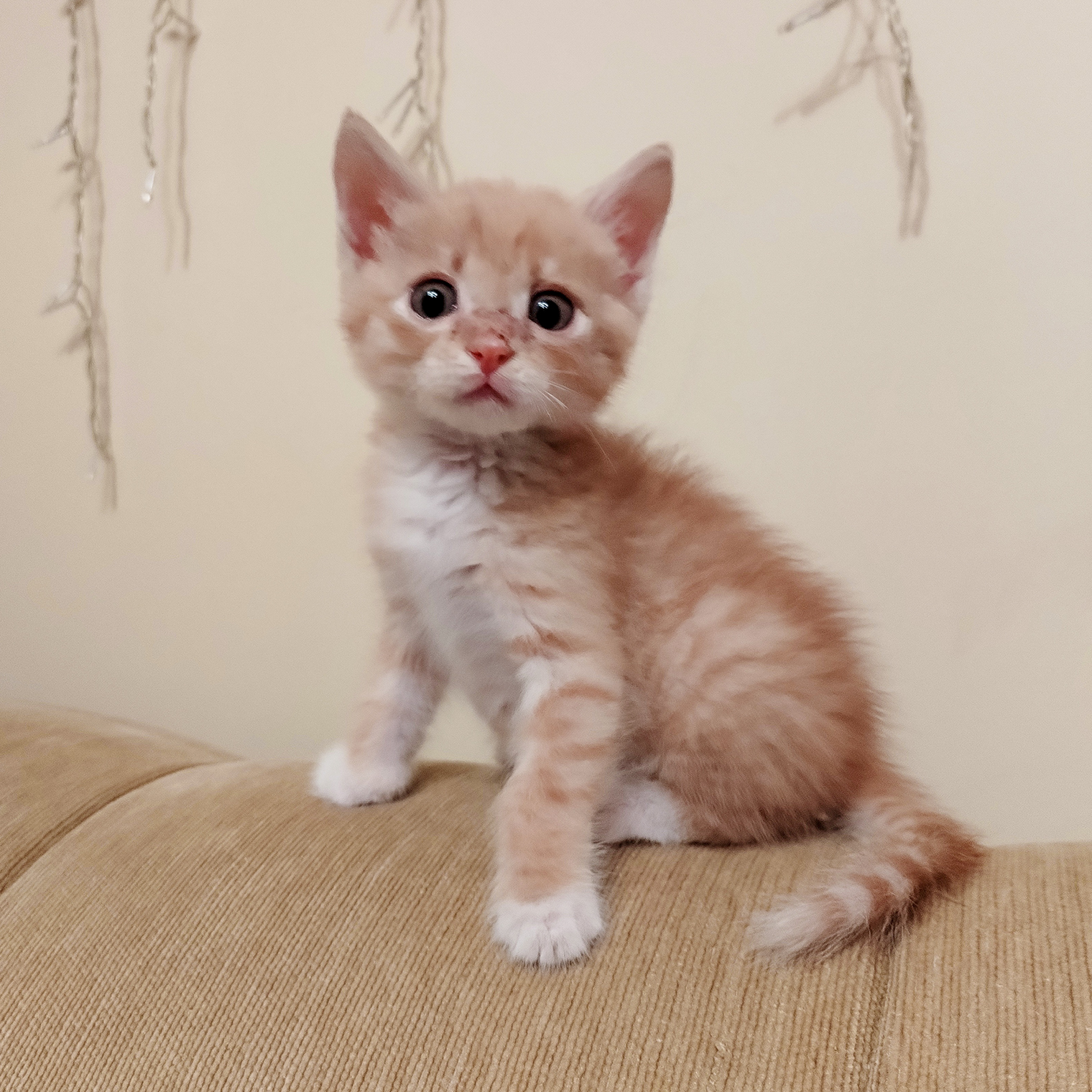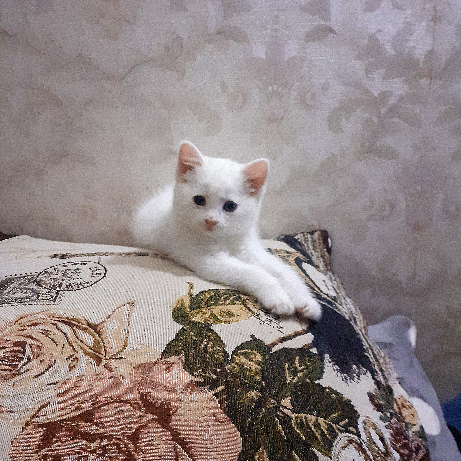 Рано утром в подъезде нашла маленькую белоснежную кошечку, на фото ей полтора месяца
