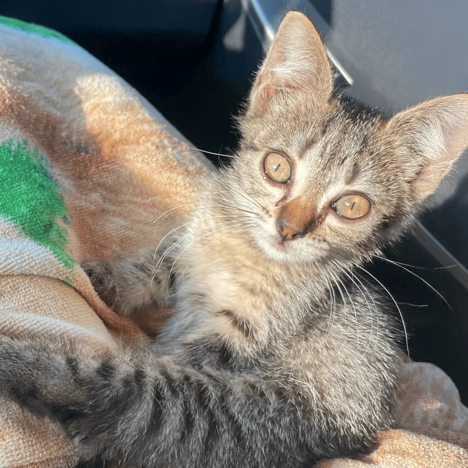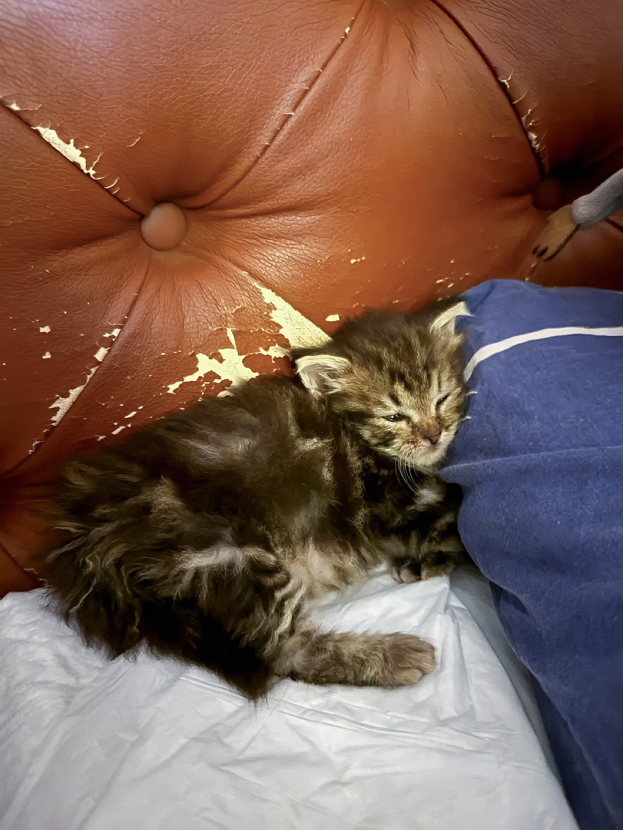 Это наш Лео, найденыш. Я нашла его возле шиномонтажной мастерской жарким июльским днем. Он был полуживым, грязным, с только что открывшимися глазками, с дефицитом массы тела — весил 180 г. Пройти мимо я не могла