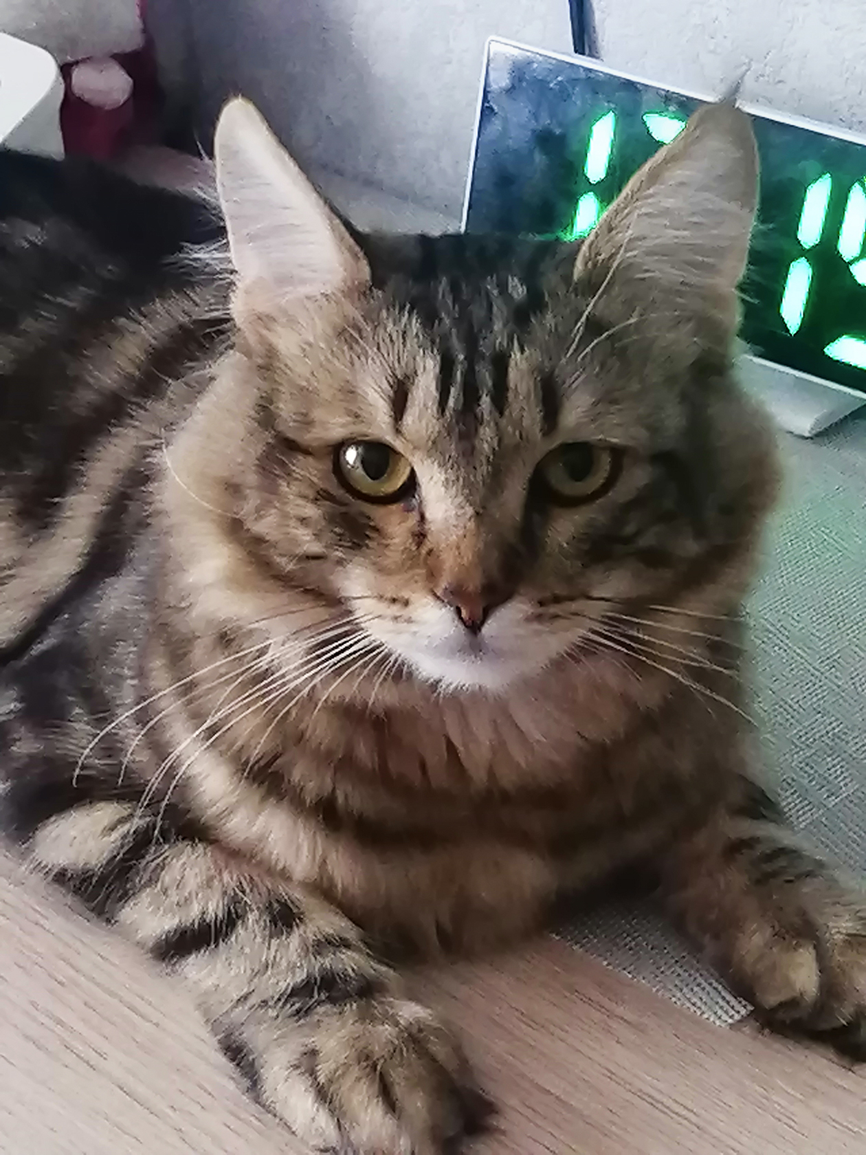 Уняша — прелестный здоровый которебенок. Стала третьей кошкой в семье. Я возвращалась в Питер из путешествия по югу России на авто и не смогла пройти мимо нее, лежавшей у газовой колонки, съедаемой блохами