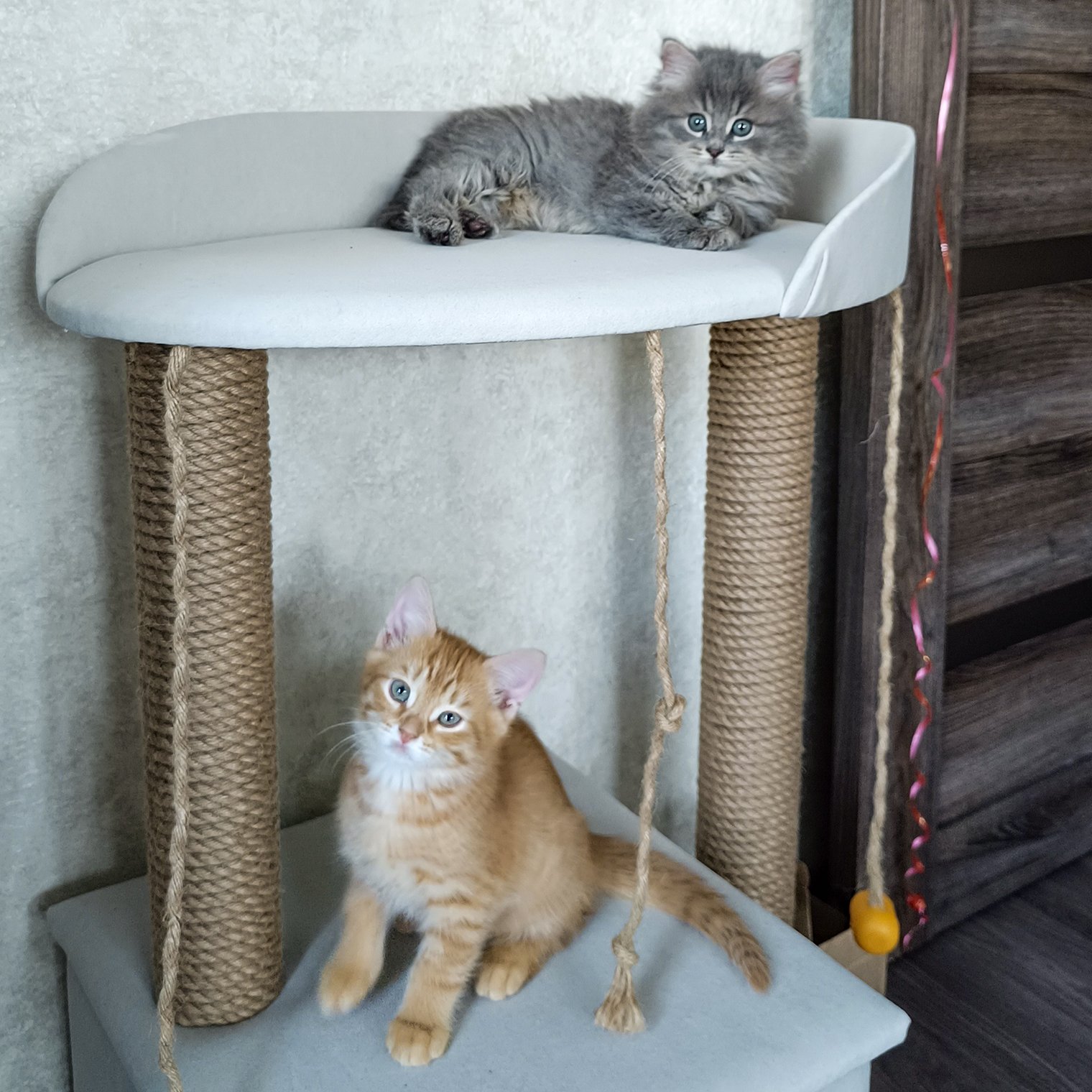 Сейчас им уже больше полугода. Разные характер и темперамент, полные противоположности, друг с другом ладят, очень ласковые, но хулиганы оба