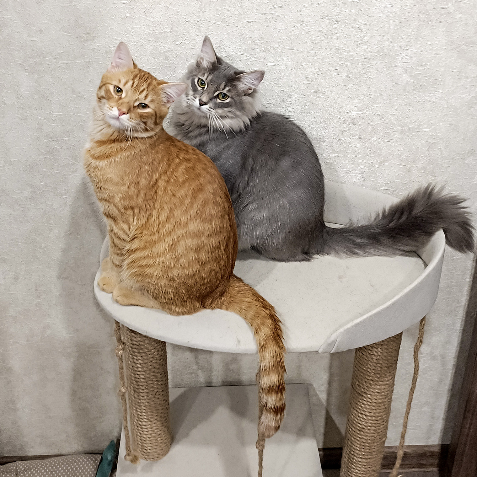 На фото два моих кота, найденных с разницей в неделю, их имена — Персик и Дымок