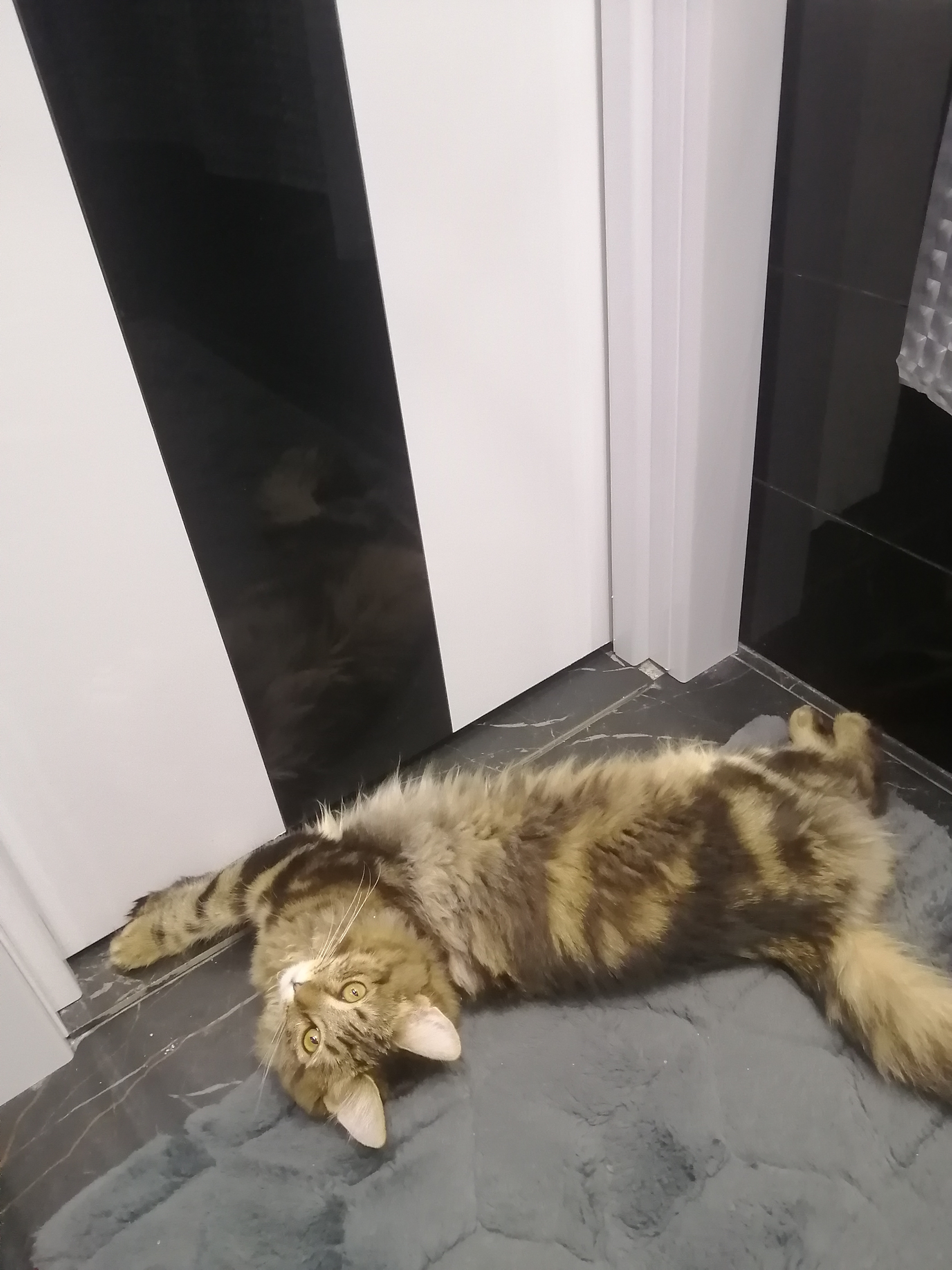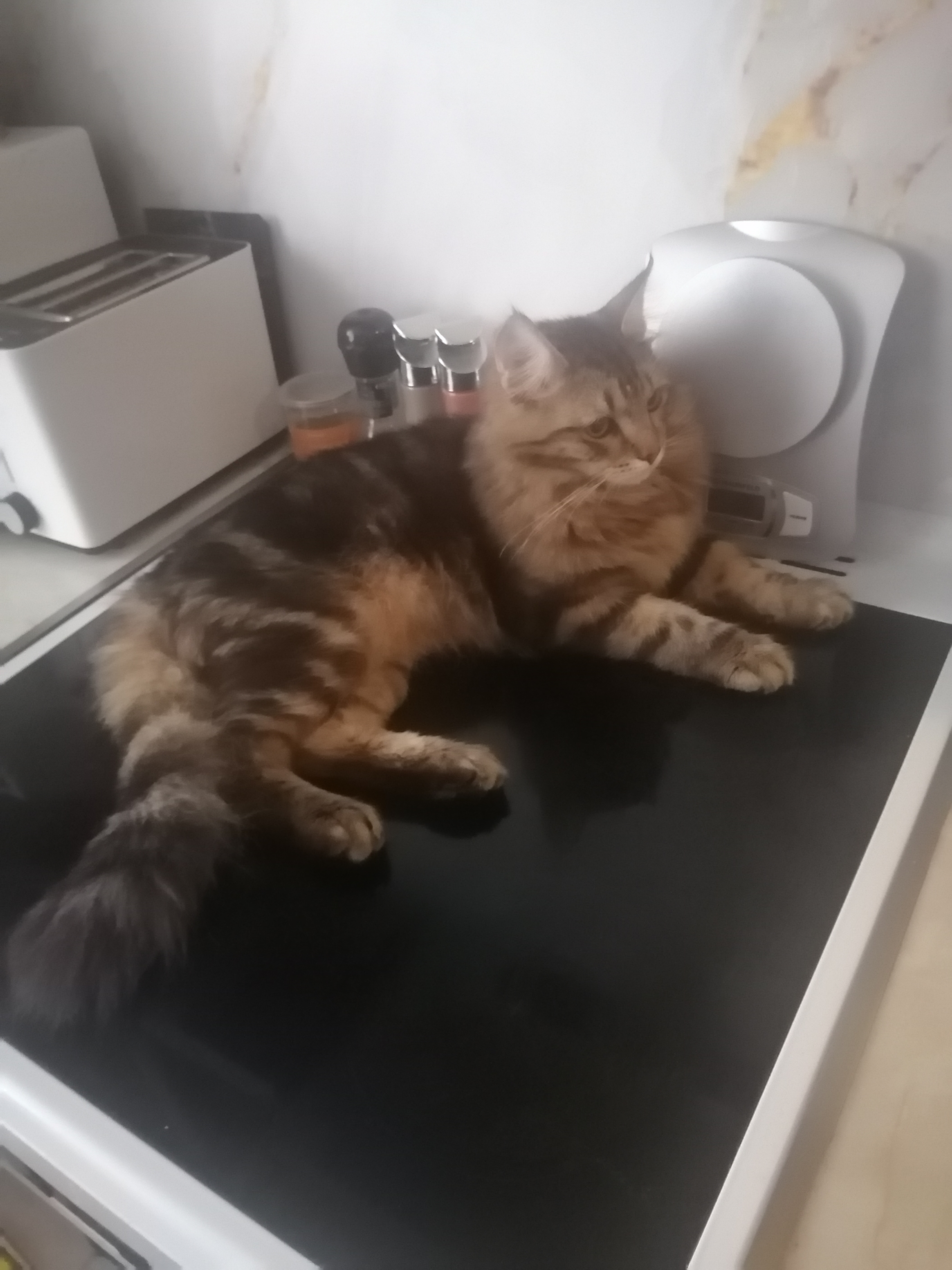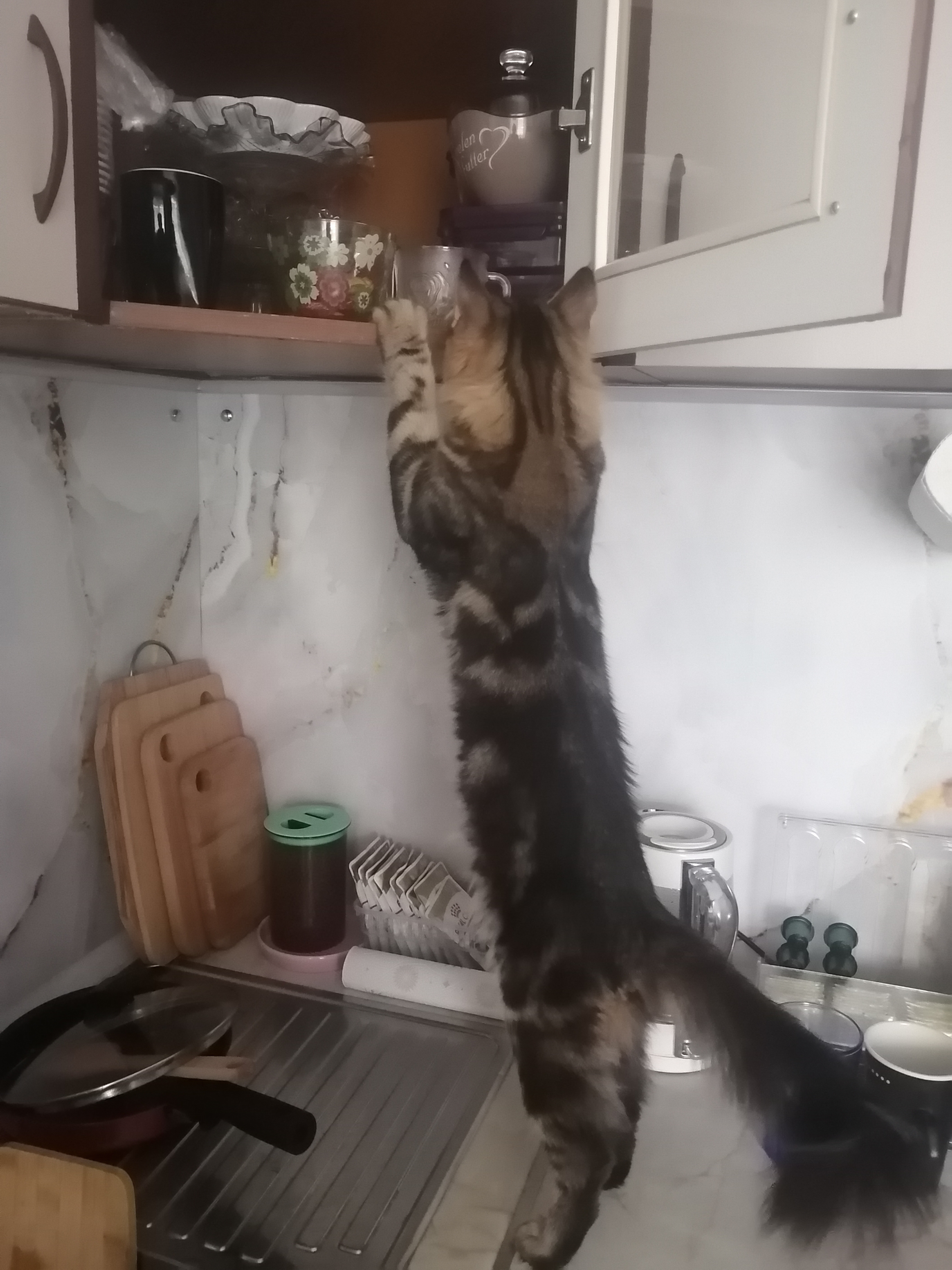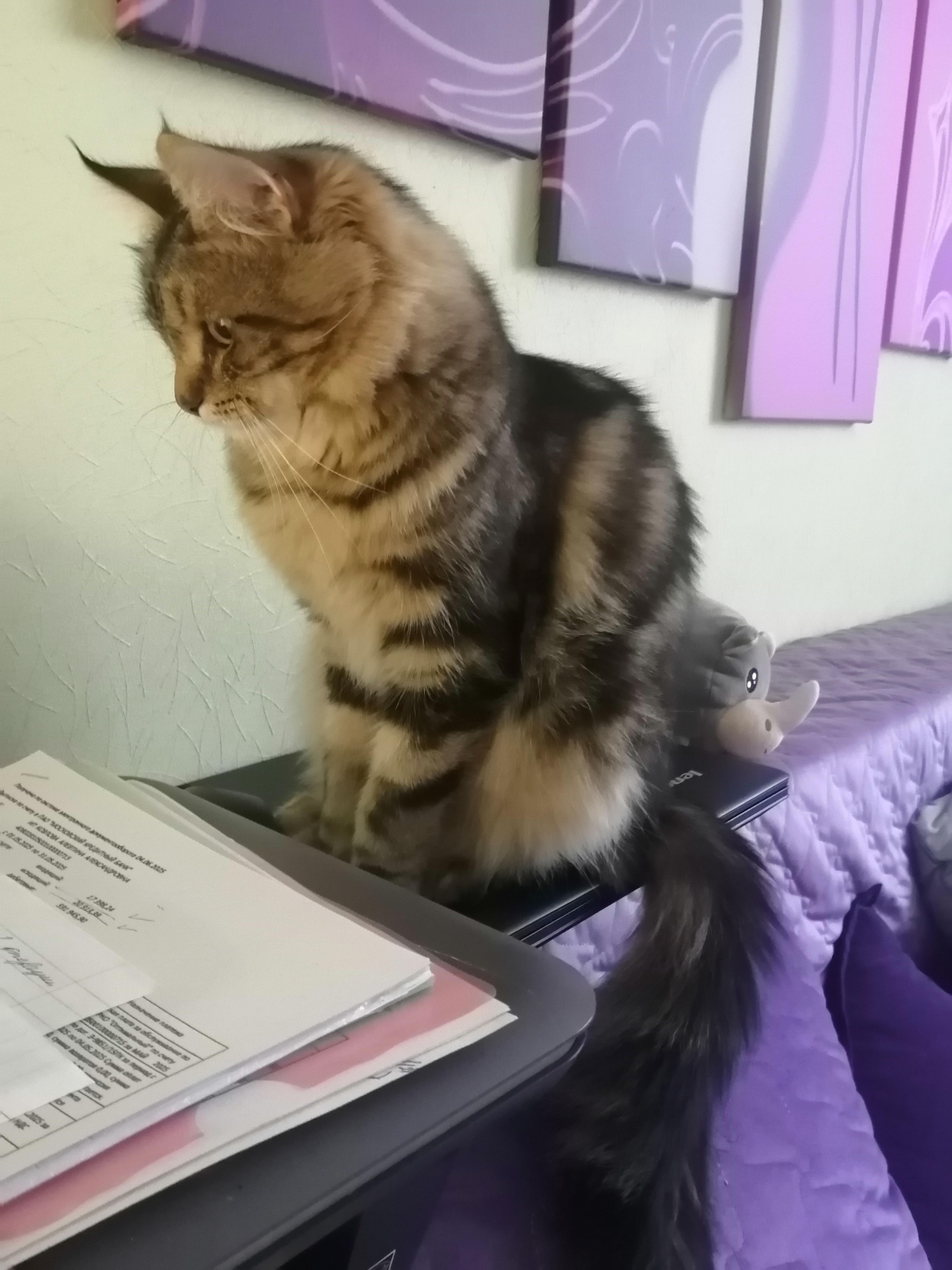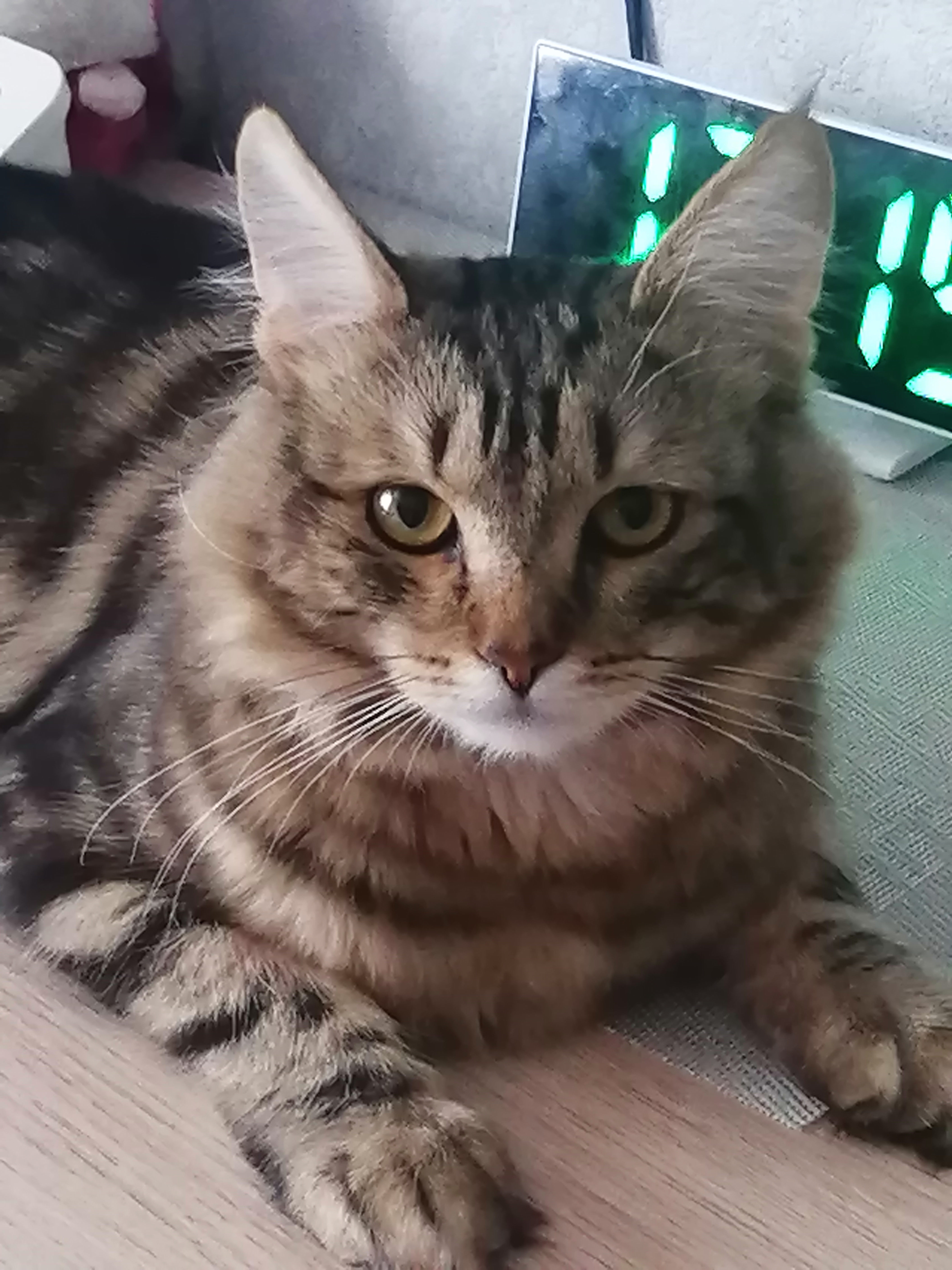 У нас новый питомец. Подобрыш с улицы в возрасте 3-х недель. Ещё сам не умел есть. Ничего не умел. Это было год назад в августе 2024 года. А сейчас вырос такой красавец котяра! И вес у него солидный, уже 4,5 кг. А всего то ему один год и 2 месяца.