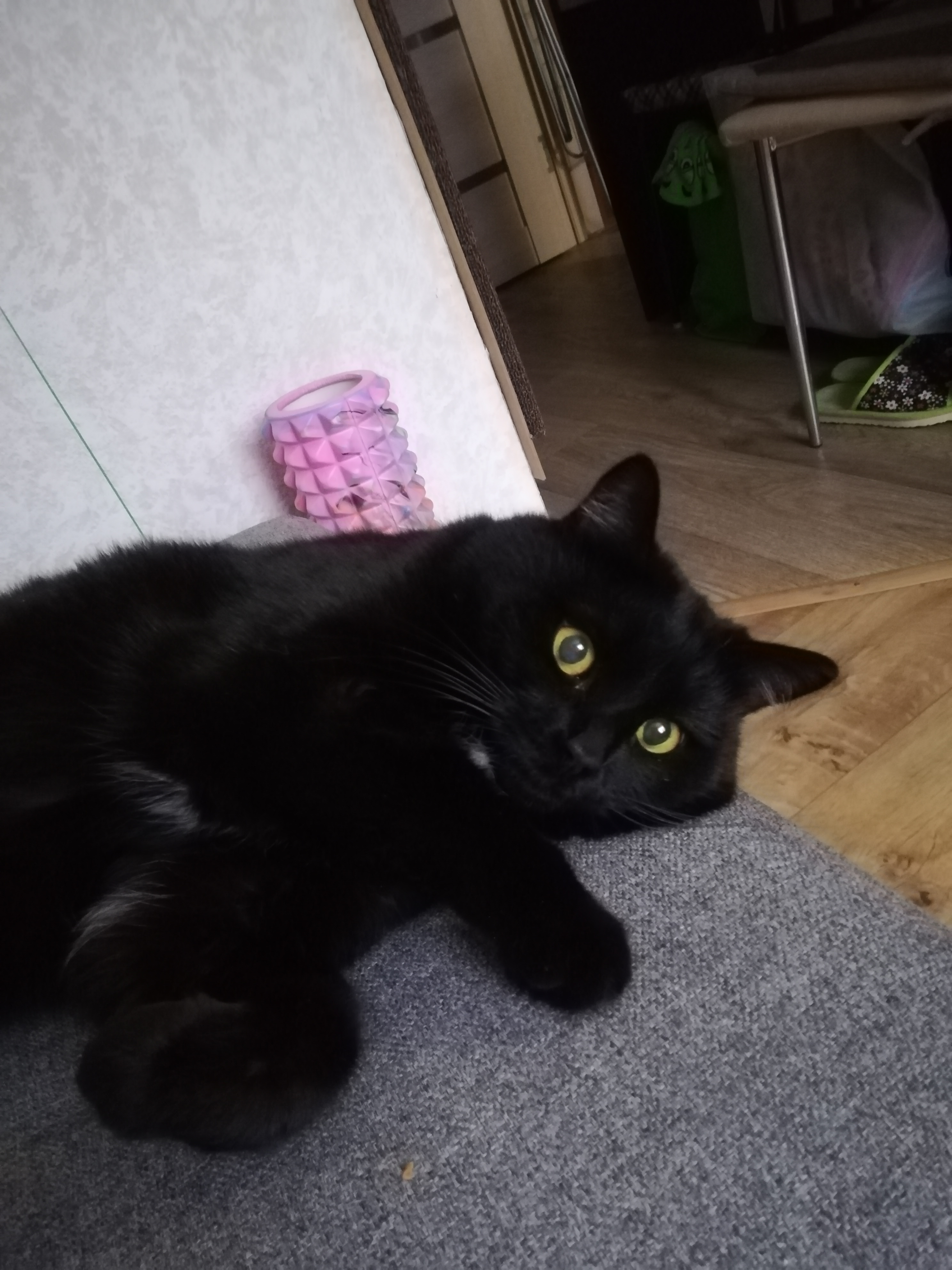 До и после: кот Вася отметил Хеллоуин и отдыхает