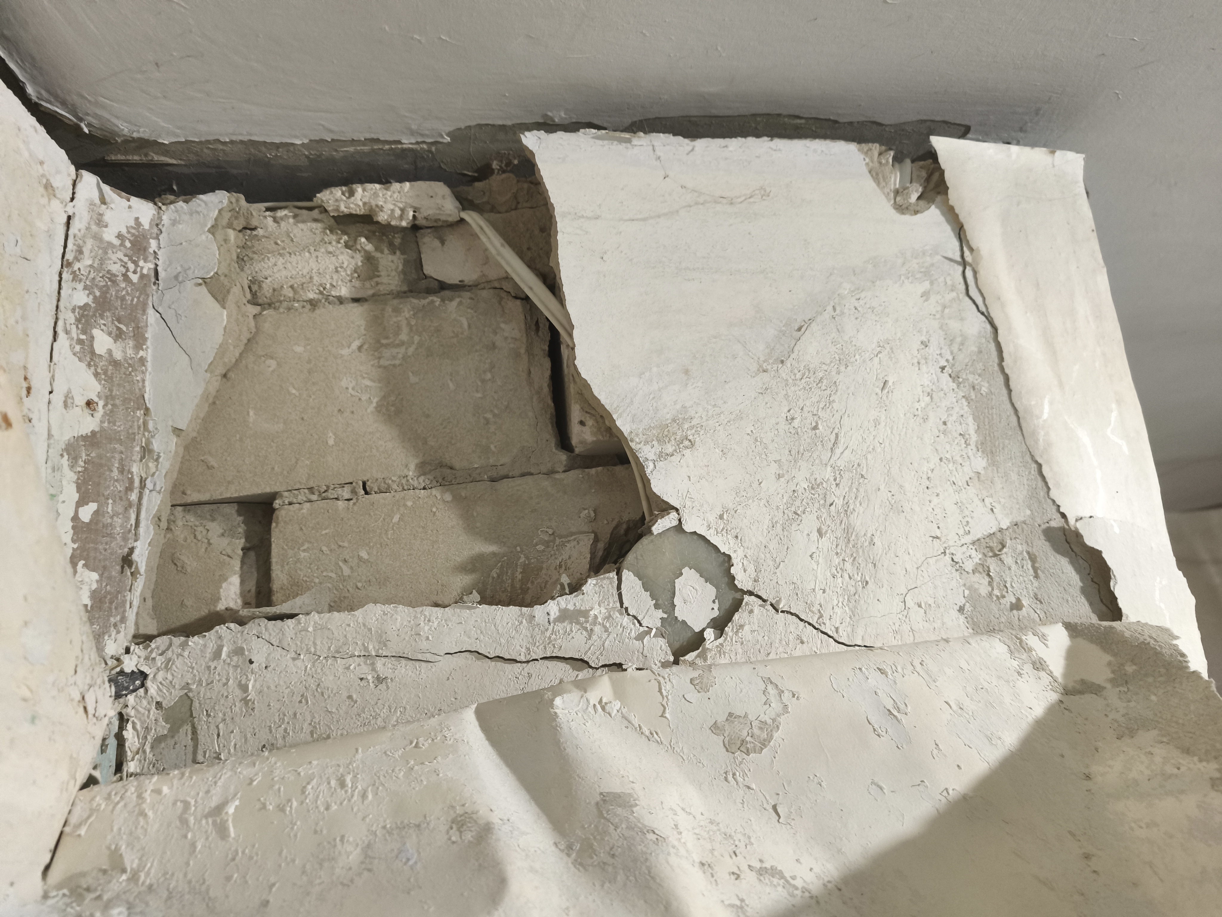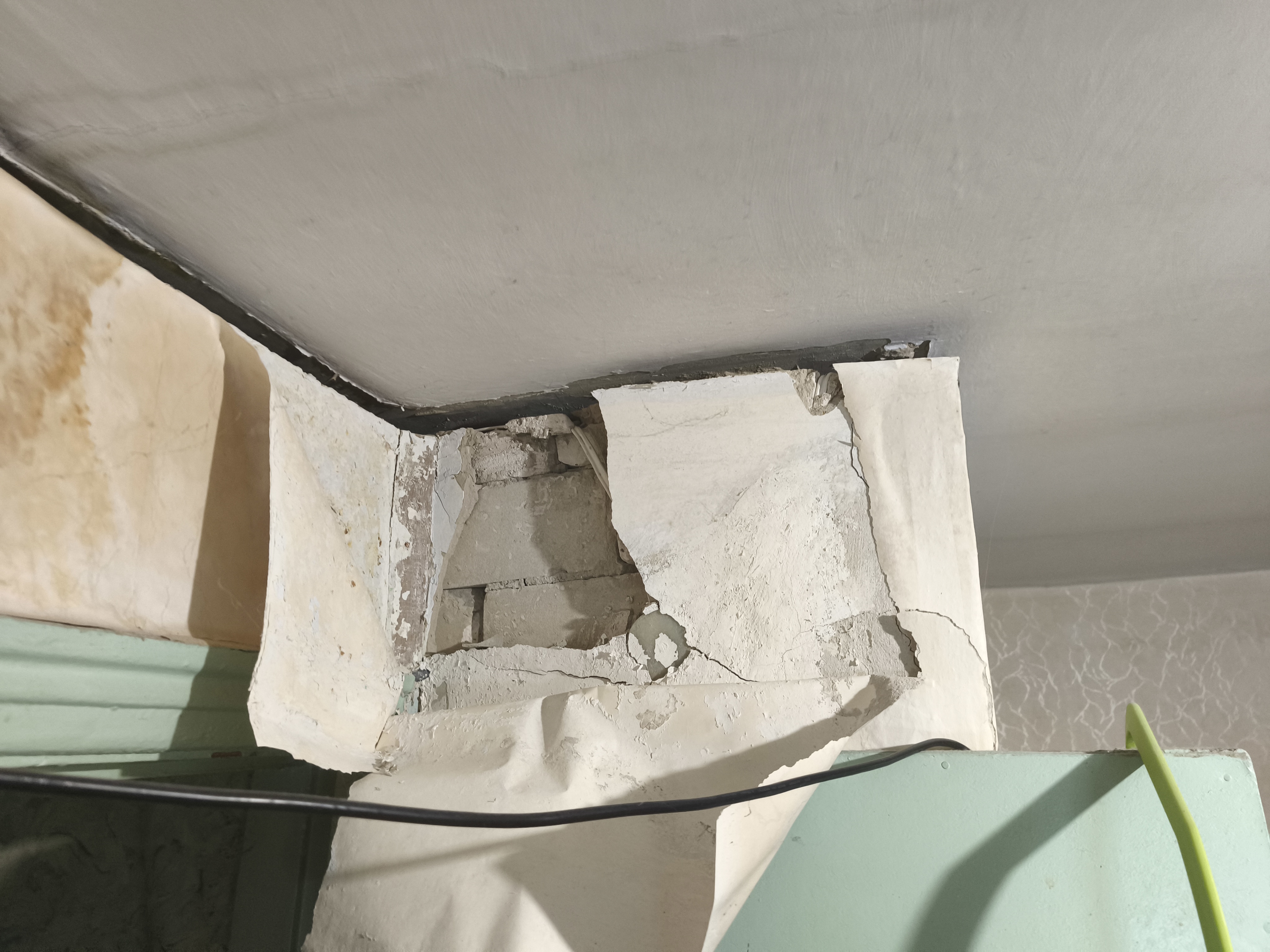 С 2022 года квартира стала аварийной из-за длительной течи в межэтажном перекрытии и периодических затоплений жильцами 2-го этажа: стена отошла от потолка, треснула, порвав электропроводку, клонится в сторону жилой комнаты, расходятся кирпичи, падает кусками штукатурка, кафельная плитка со стороны ванной комнаты…