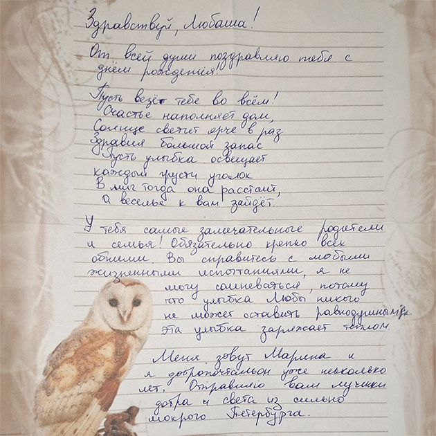 «Добропочта» дарит много радости и волонтерам. У нас нет условия, что получатели обязательно отвечают добропочтальонам: не у всех семей есть на это силы и время. Но люди все равно делают это.