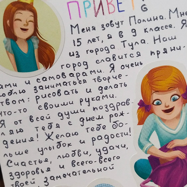 Не могу оценить точно, сколько в проекте волонтеров, но у наших соцсетей почти 27 000 подписчиков. Письма летят из разных регионов России, от Мурманска до Владивостока, и даже из других стран. Например, наших подопечных поддерживают посткроссеры из Беларуси, а волонтер Галина из Германии отправляет открытки уже много лет.