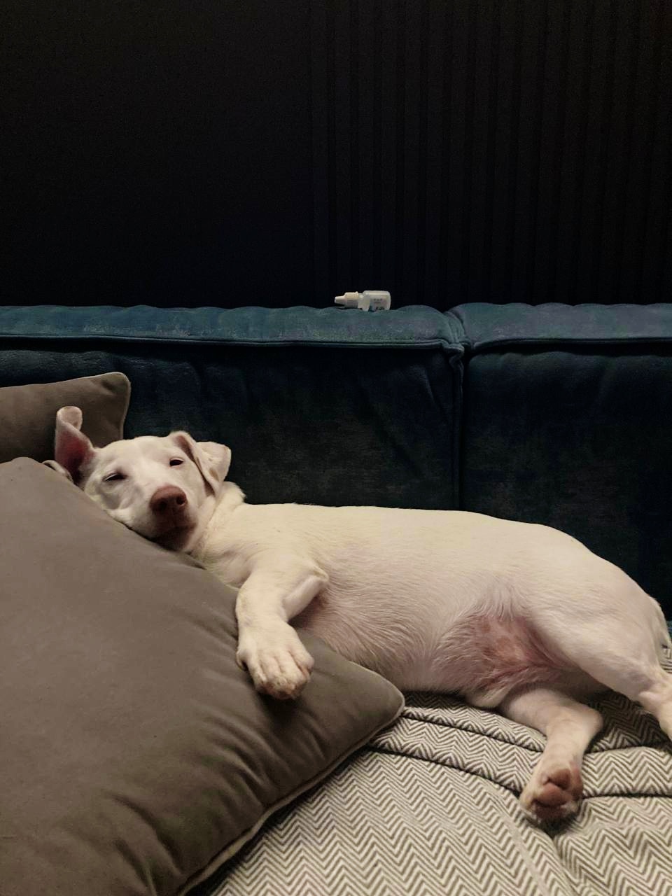 Пока мама смотрит любимый сериал, Арчик сладко дремлет на диване.