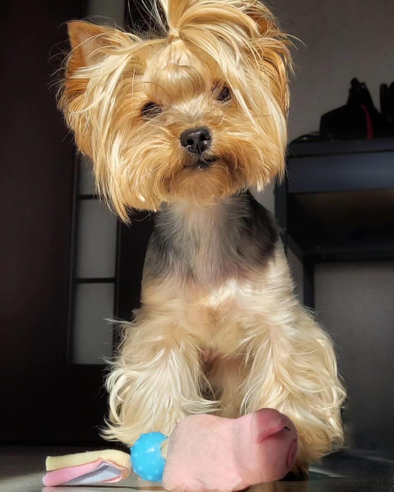 Играет и позирует одновременно! Боне важно, чтобы хозяева внимательно наблюдали за процессом.