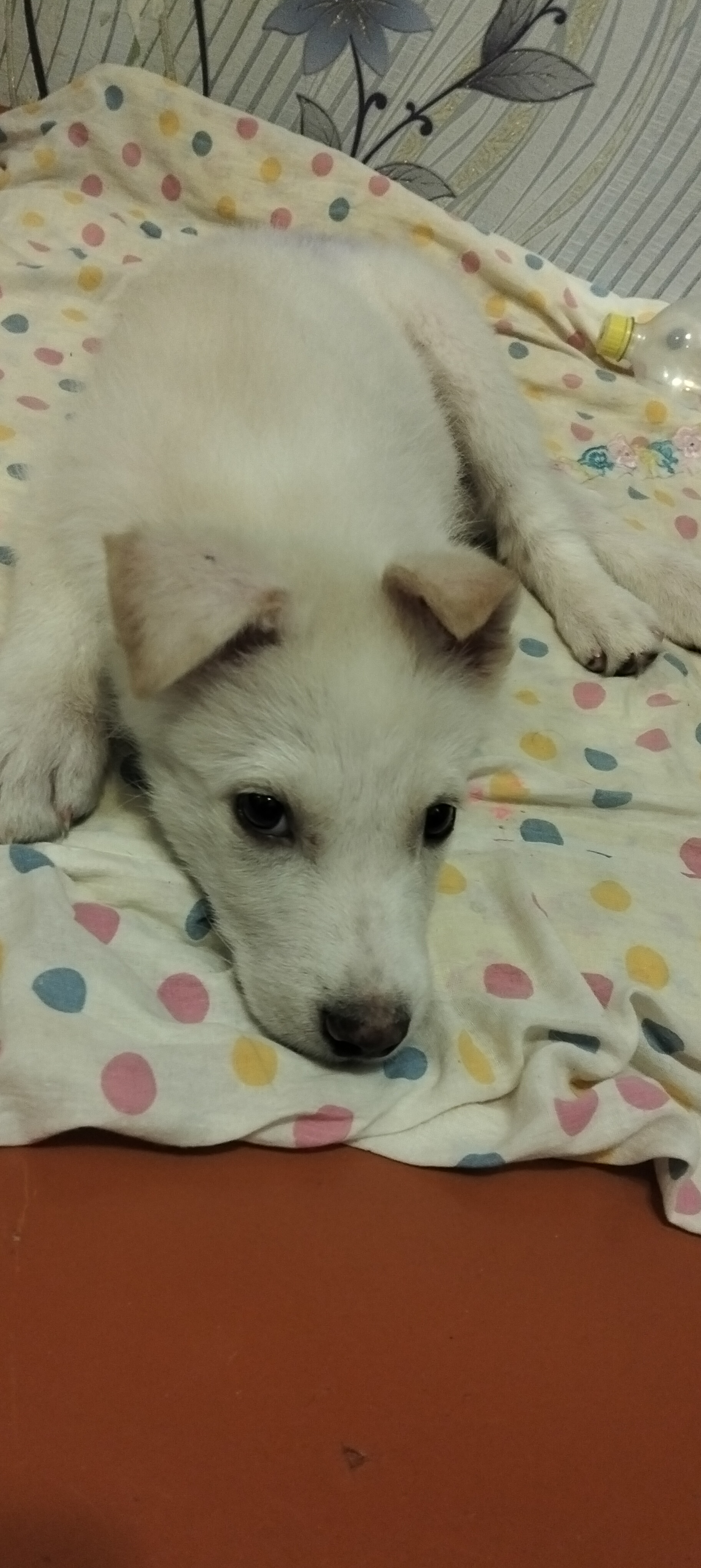 Теперь он с нами. Мои коты в шоке — привыкли к свободному передвижению, а теперь вынуждены быть быстрее и осторожнее. Щенка мы назвали Бублик — имя прижилось с первого дня.
