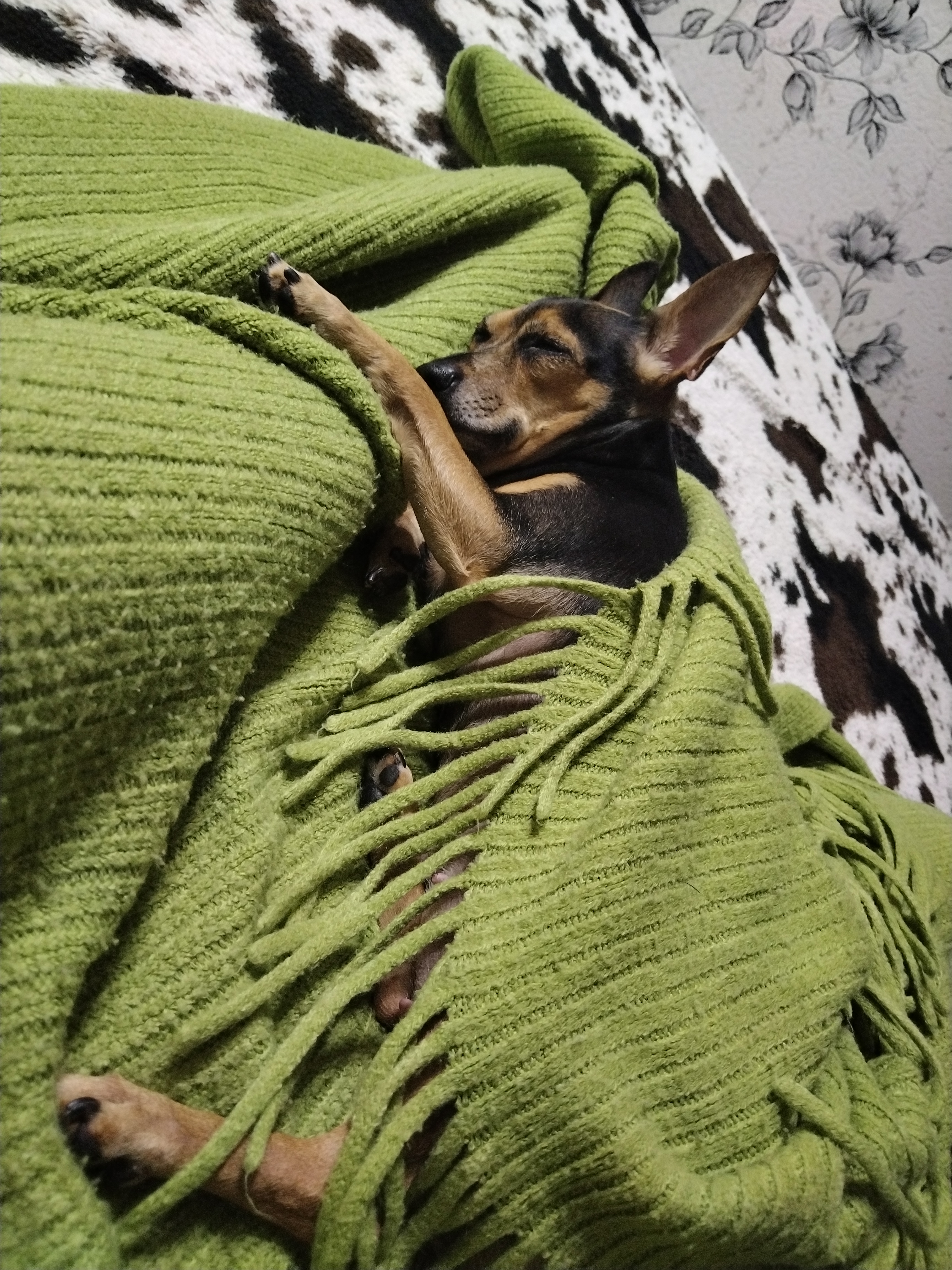 Что может быть лучше в дождливый и холодный осенний день, чем сон, да еще с хозяйской ногой в обнимку 😉 Наша Джулька любит нас охранять, но на посту быва тяжело и клонит в сон.