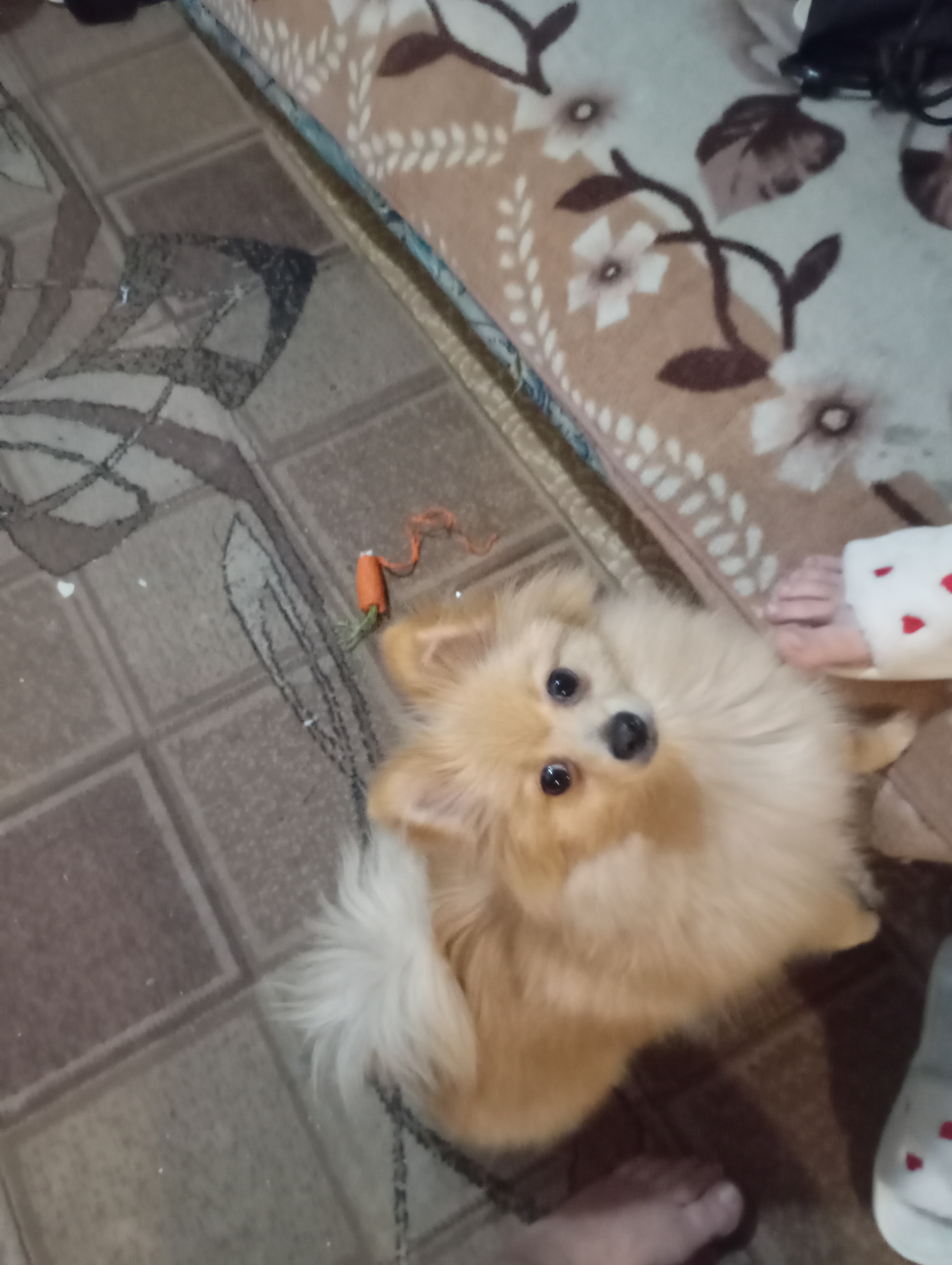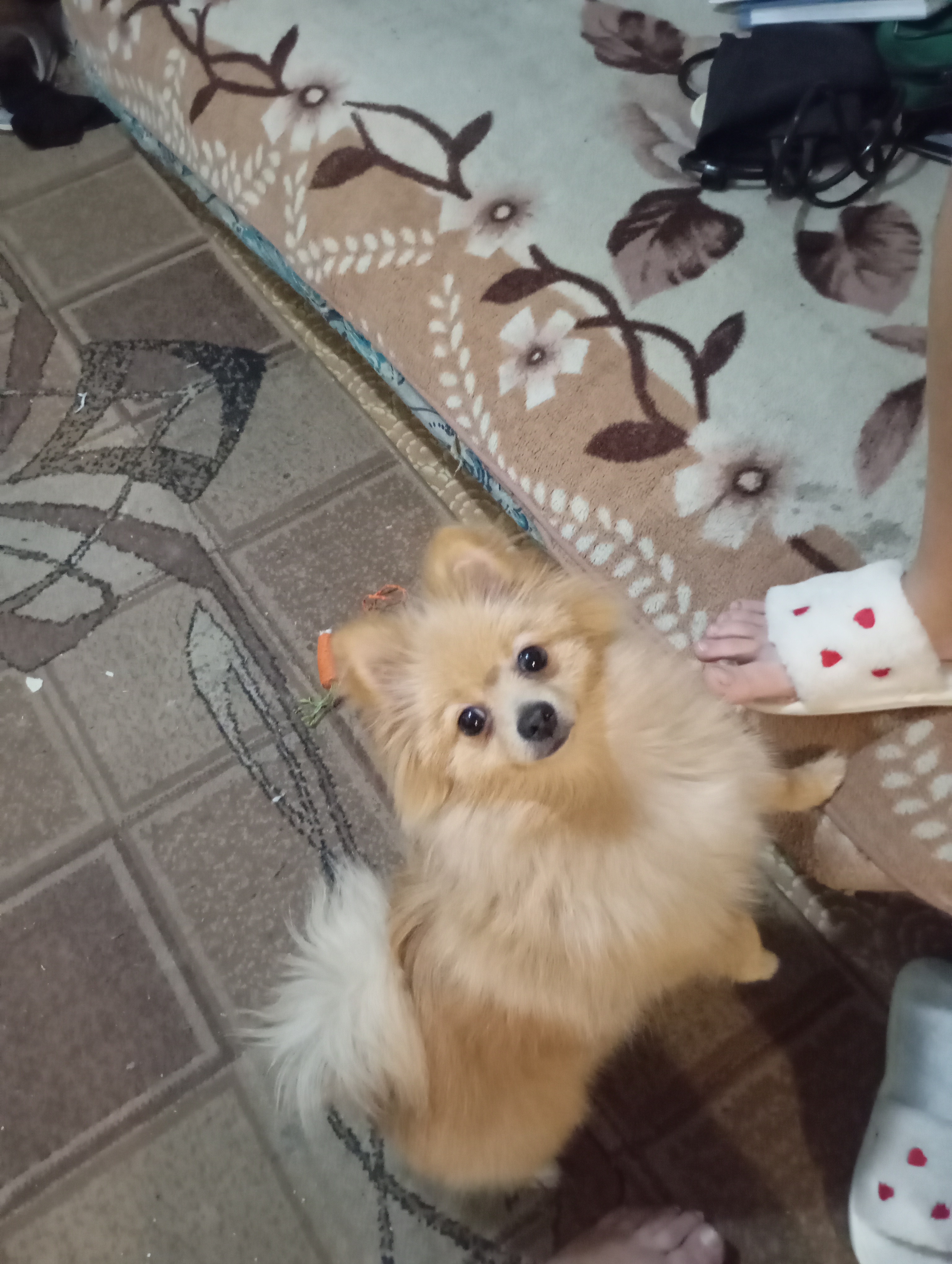 Ревнует, я на диване (тапок мой) глажу кошечку Василисочку.