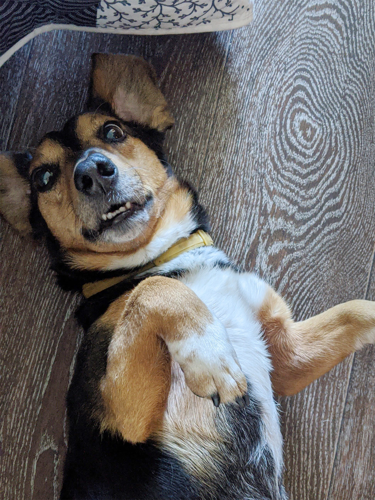 К людям он вообще относится очень хорошо — эмпатичный, тактильный песик. С собаками отношения по-прежнему не очень, хотя с возрастом он стал спокойнее.