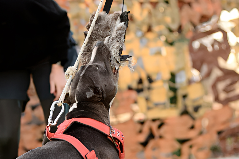 В пит-стафф-многоборье задача животного — преодолеть несколько препятствий и схватить игрушку-приманку, которую потом можно будет хорошенько потрепать. В процессе собака должна должна прыгать в длину, через барьеры, в высоту — как с опорой на стену, так и без нее.
