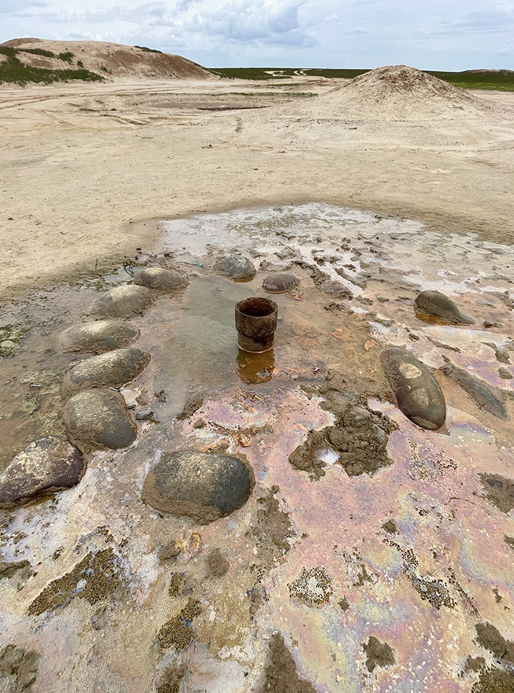 В заповеднике «Черные земли» есть подземная скважина. Вода в ней соединяется с метаном. Когда смесь выходит на поверхность, можно поднести к ней спичку, и вода загорится.