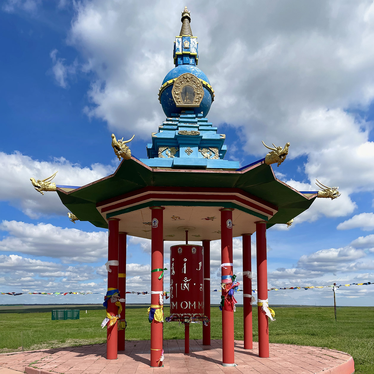 11-метровую постройку возвели в 1999 году. Это была первая в Элисте ступа, построенная в постсоветское время.