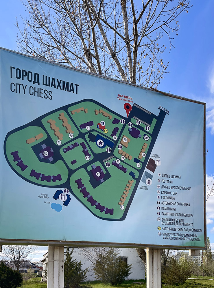 Кирсан Илюмжинов, который руководил Калмыкией в 1993—2010 годах, с 1995 по 2018 возглавлял еще и Международную шахматную федерацию. Это нашло отражение в облике Элисты: на ее окраине есть Сити-Чесс, или Город шахмат, — небольшой квартал с жилыми коттеджами и Дворцом шахмат.