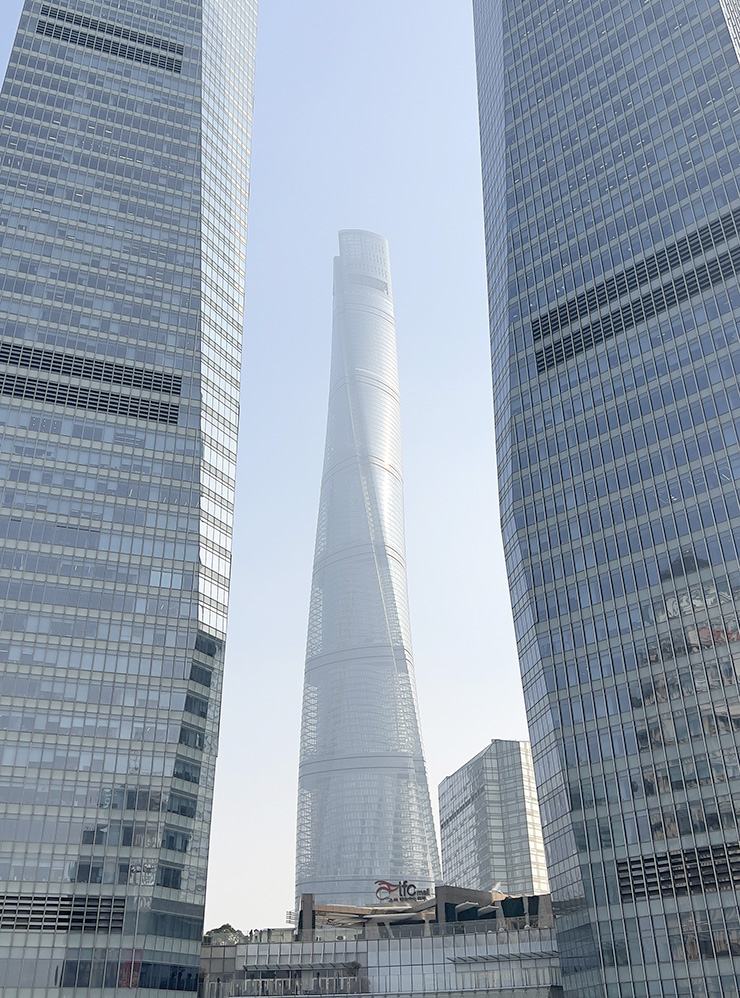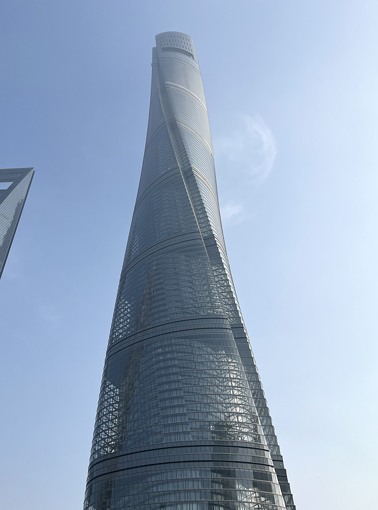У Шанхайской башни много особенностей. Например, ее верхняя часть закручивается на 120 градусов. Читал во многих путеводителях, что такая конструкция снижает ветровую нагрузку на здание на 24% по сравнению с обычными небоскребами.