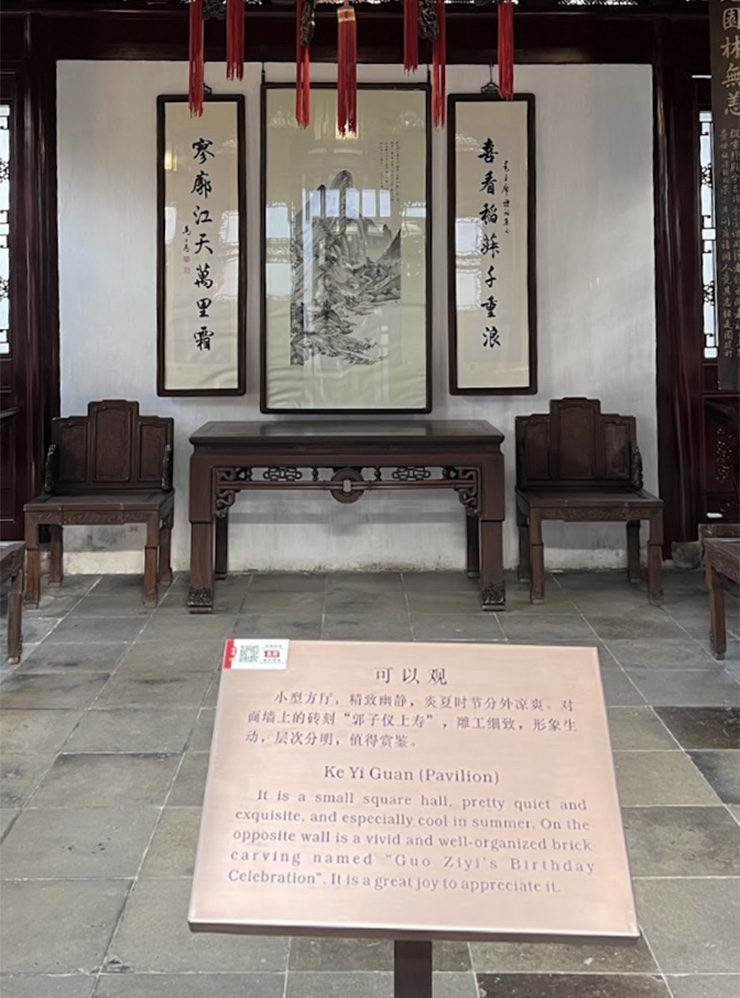 Сейчас отреставрированный сад огражден забором. Если не знать, что за ним скрывается одно из самых спокойных мест в Шанхае, можно пройти мимо. Территория небольшая, но на ней присутствуют все элементы классического китайского сада: павильоны, залы, пруд, дорожки и мосты. Здесь нет современных построек, вместо них — старинная мебель, резьба по дереву и скульптуры животных из китайской мифологии.