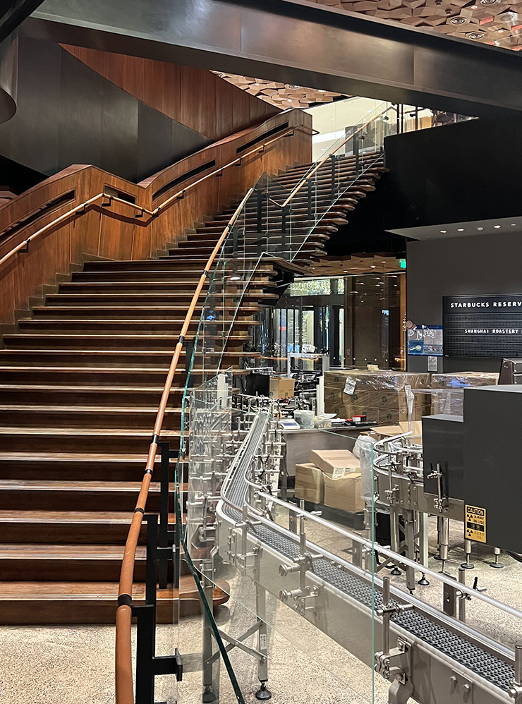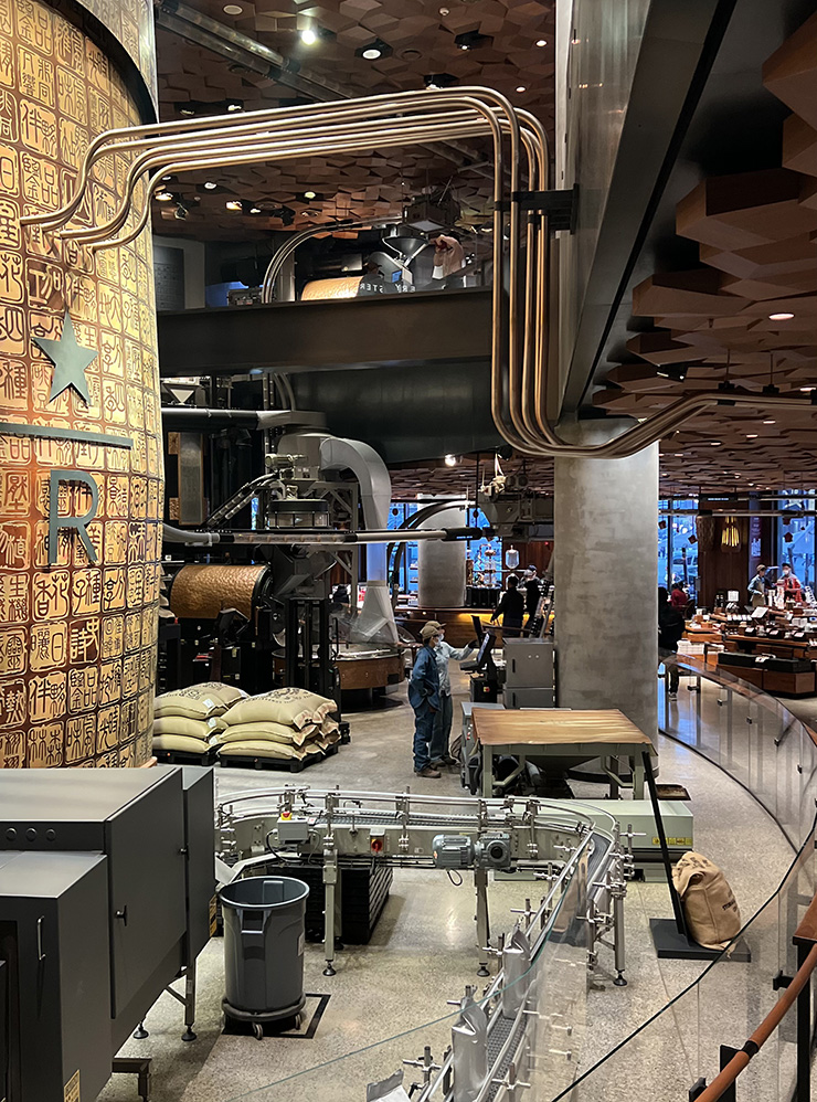 Зайти в местный Starbucks Reserve Roastery мне посоветовал бывший коллега, который живет в Китае. Иначе я, скорее всего, пропустил бы это место: в путеводителях о нем не рассказывают. Это кофейня Starbucks премиум-класса с обжарочным цехом, баром, пекарней и чайным баром. Таких заведений в мире всего шесть . В Reserve Roastery используют особое зерно, которое поставляют с небольших плантаций, вручную отбирают и обжаривают небольшими партиями.