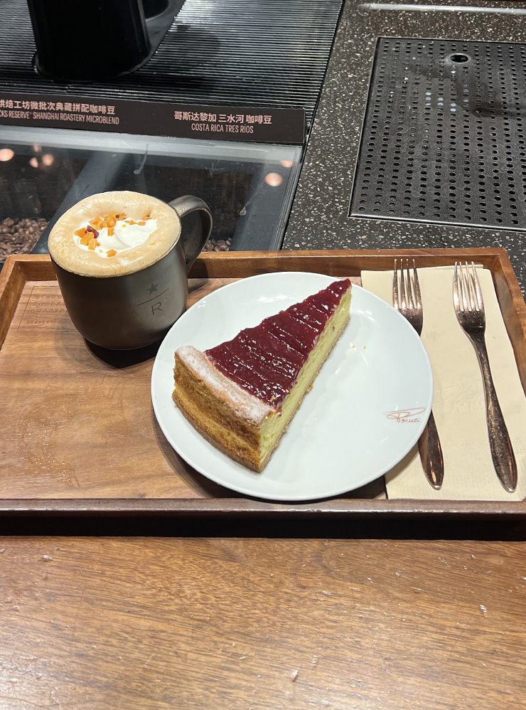 Не помню точно, что я заказывал в первый раз, но разницы с напитками в обычных кофейнях не почувствовал: ее сложно заметить в латте, капучино и других смесях кофе с молоком. Но было вкусно. Еще мне понравилась подача — в кружке с логотипом Reserve Roastery и на деревянном подносе.