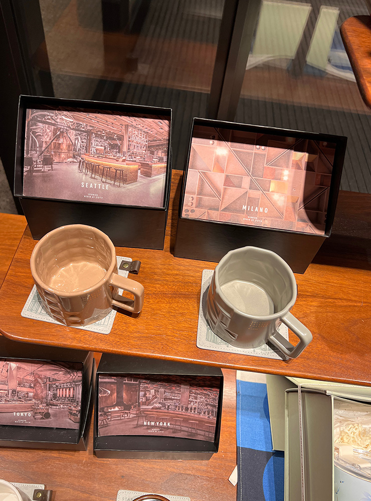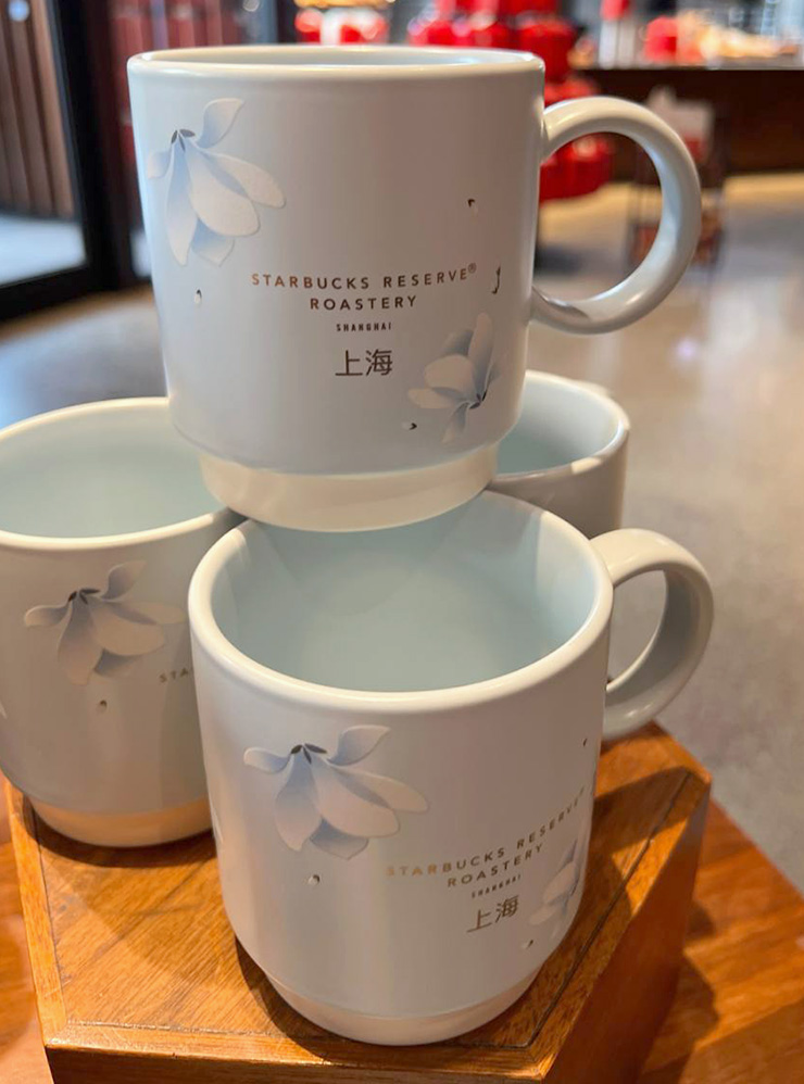 Рядом с обжарочным цехом находится зона итальянской пекарни Princi, которая тоже принадлежит Starbucks. Еще на первом этаже расположен магазин с сувенирами и мерчем Reserve Roastery: чашками, термосами, футболками, худи. Но товары не из дешевых: кружка из коллекции Reserve Roastery в 2024 году стоила 299 ¥ (3 301 ₽).