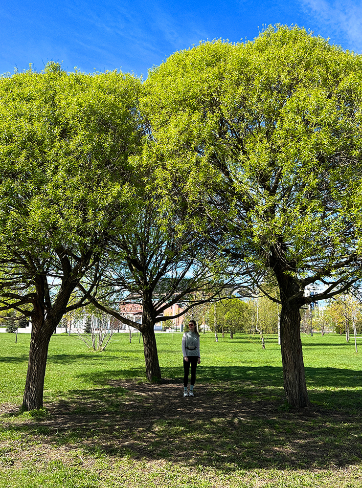 Мне нравится, что на территории парка регулярно высаживают деревья. Они пока не очень большие, но, думаю, через несколько лет здесь появится красивый лес. Особенно хорошо в парке осенью, когда все пестрит золотыми красками. Зимой рядом с ним работает каток, а в теплое время года на этой же площадке играют в футбол.