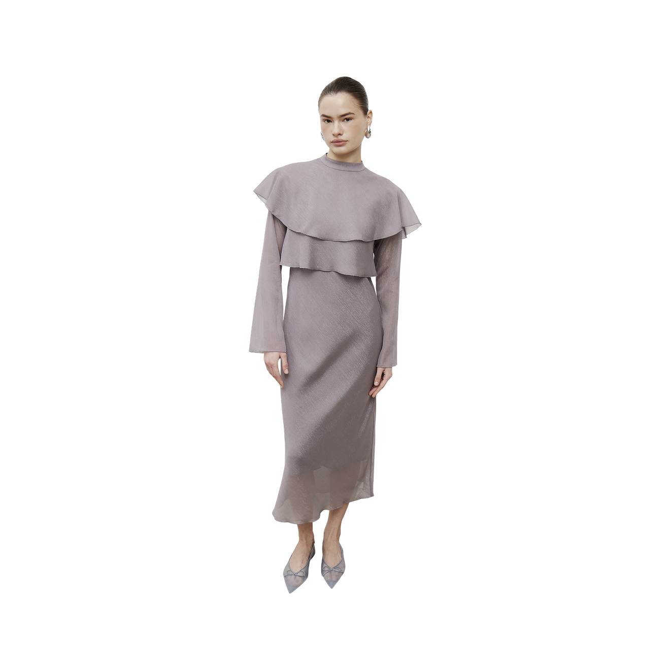Платья с накидками — современное прочтение старинной пелерины, которая массово вошла в европейскую моду в первой половине 19 века. Тогда были популярны вырезы каре и «лодочка», оголяющие грудь и плечи. Чтобы защититься от холода, ветра и взглядов прохожих, женщины надевали пелерины — небольшие накидки или шали, зачастую сшитые из той же ткани, что и платье.
