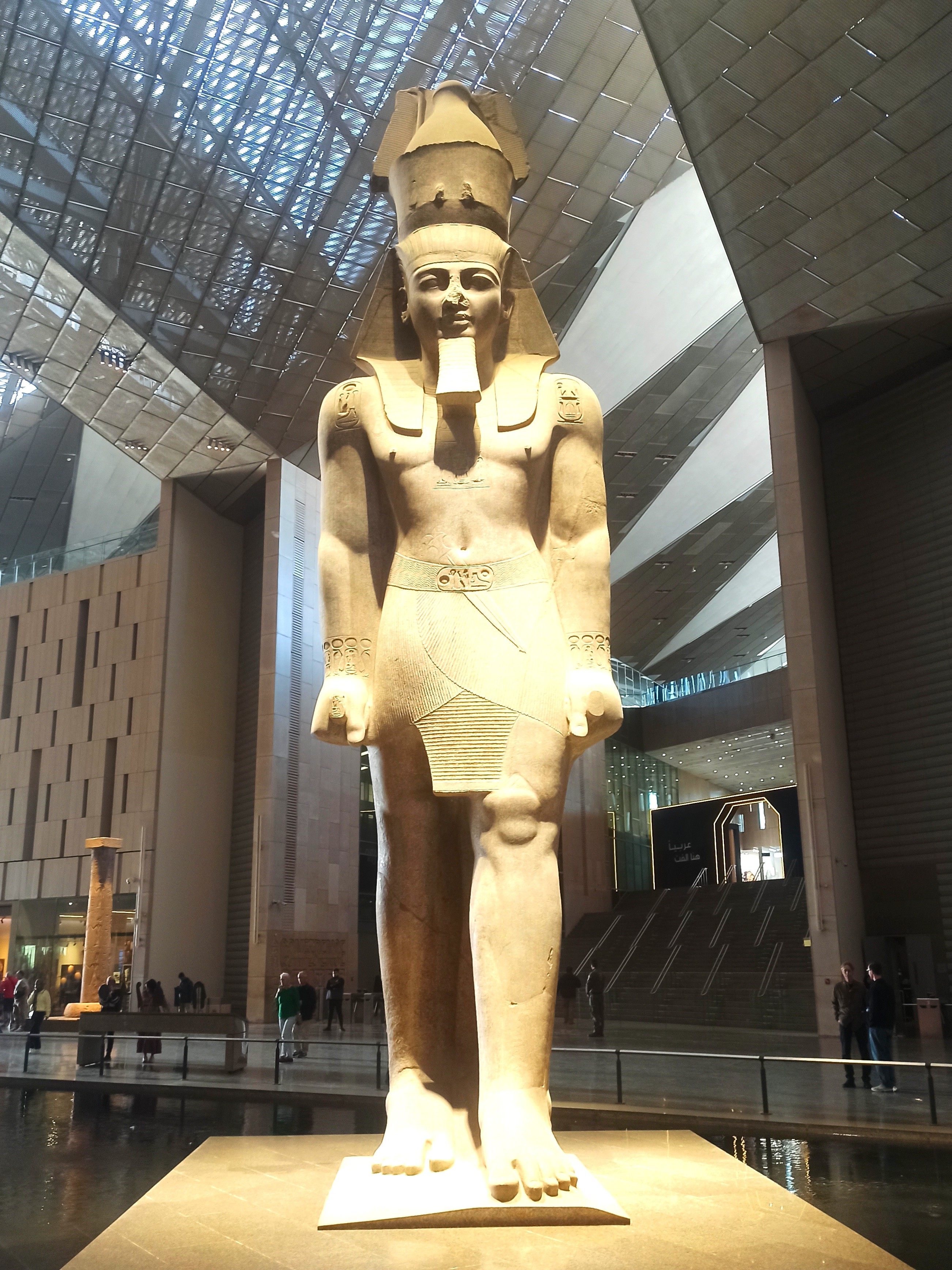 Большой Египетский музей — это 50 гектаров площадей, более 50 тысяч экспонатов в 12 залах, представляющих Египет от доисторических времен до греков, римлян, византийцев, османов и арабов. Отдельный зал посвящен Тутанхамону и целый корпус — музею солнечной ладьи Хеопса.
