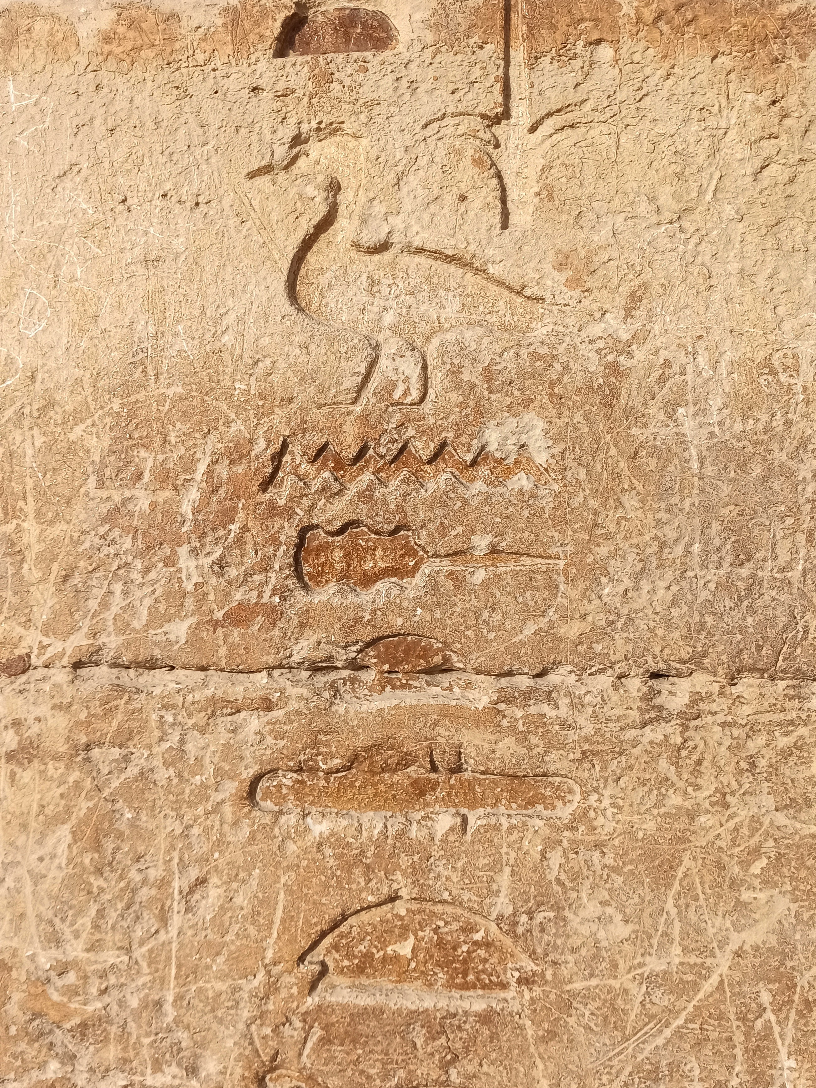 Комплекс пирамид в Гизе включает пирамиды фараонов Хеопса, Хефрена, Микерина, малые пирамиды их жен, Большого Сфинкса, слоты для лодок и остатки храмов и других гробниц и построек. Помимо самих пирамид, меня особенно порадовали сохранившиеся кое-где настенные надписи.