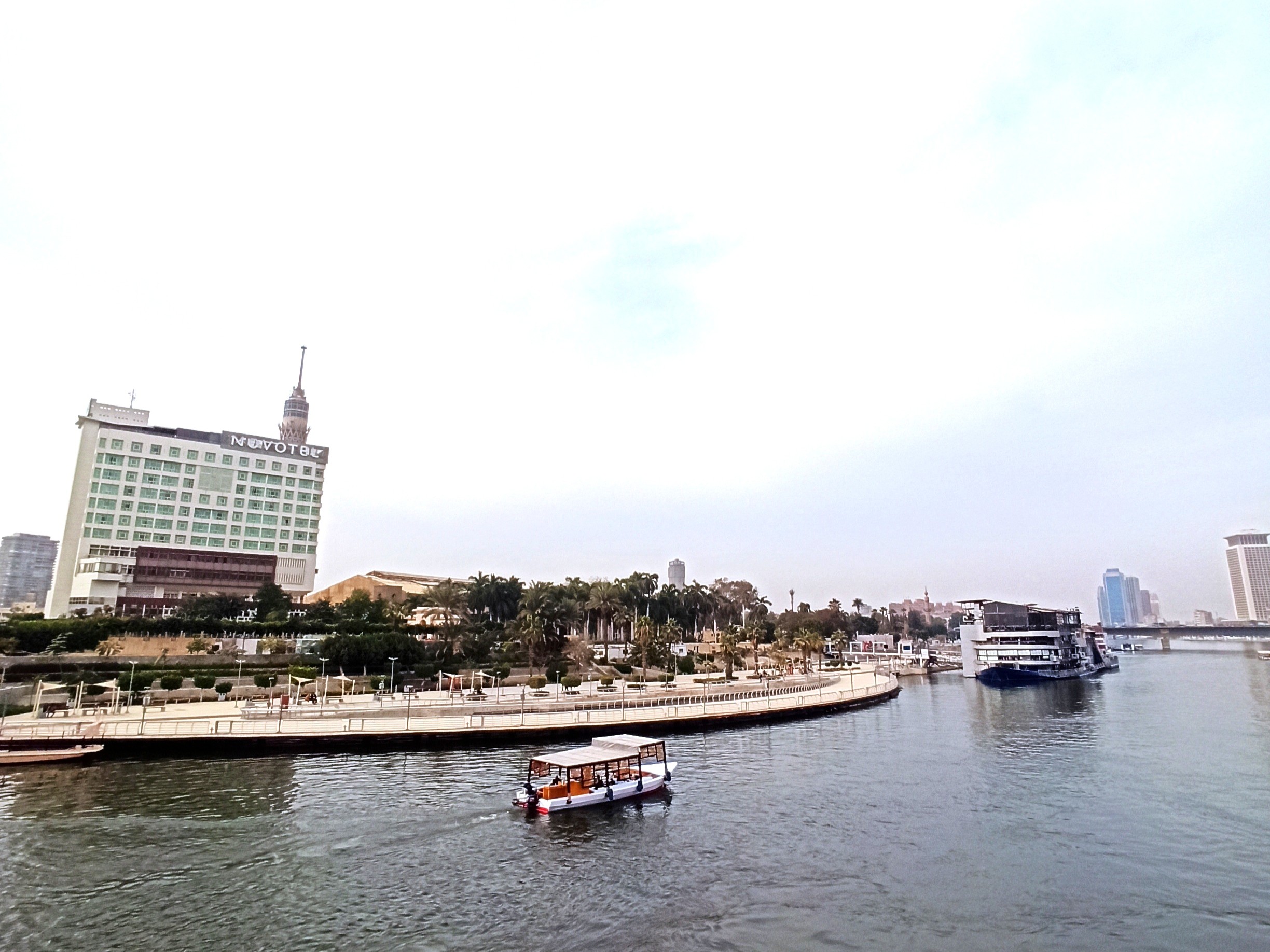 4 февраля я заселился в отель в историческом центре Каира и на следующий день отправился к Нилу. Мой маршрут начался с площадей Тахрир и Талаат Харб. Нил удивил своей шириной: я добрался лишь до острова Гезира, где расположены район Замалек, Каирская телебашня и Каирская опера.